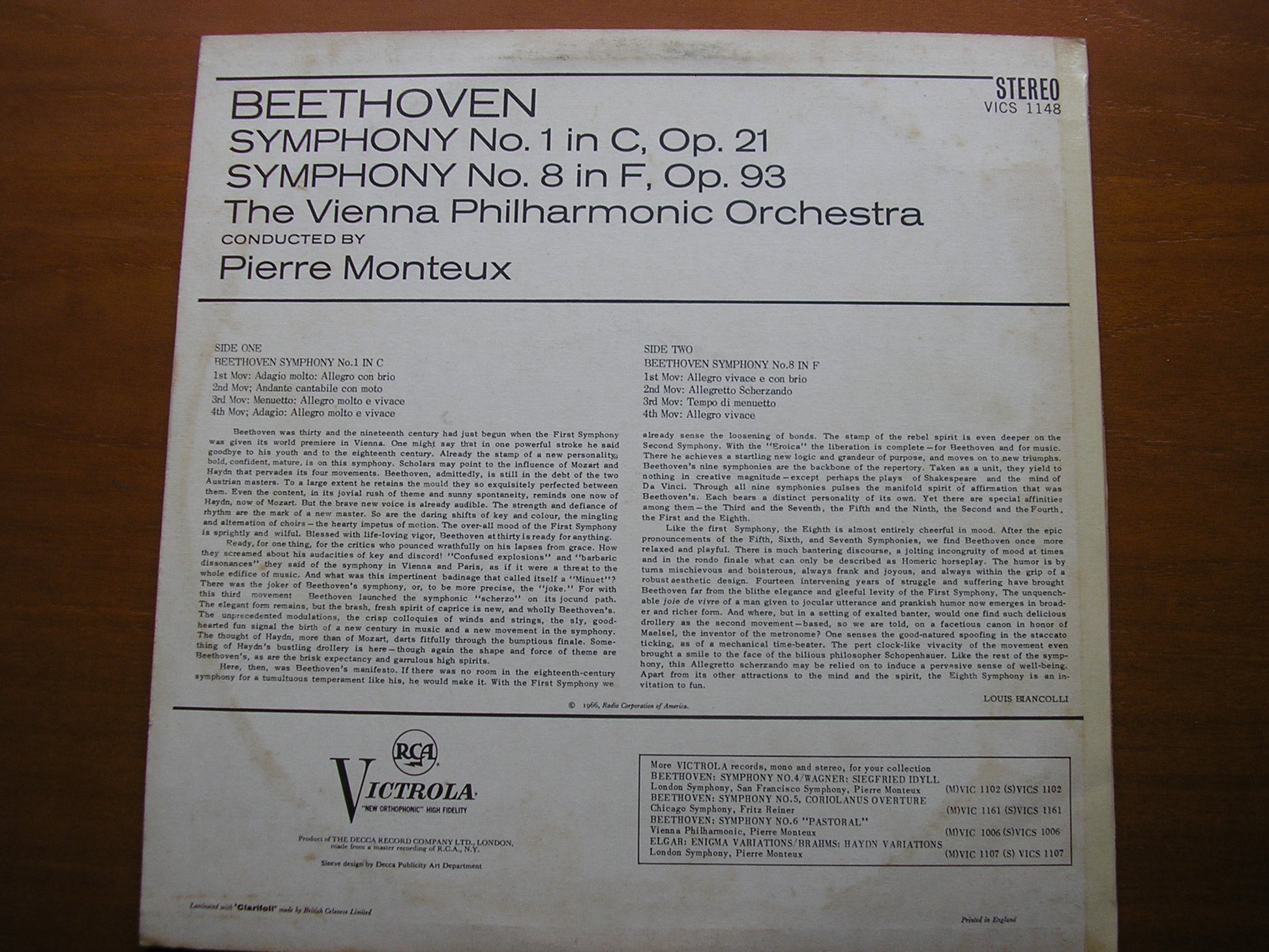 VICS 1148  BEETHOVEN: SYMPHONIES Nos. 1 & 8    PIERRE MONTEUX / VIENNA PHILHARMONIC ORCHESTRA