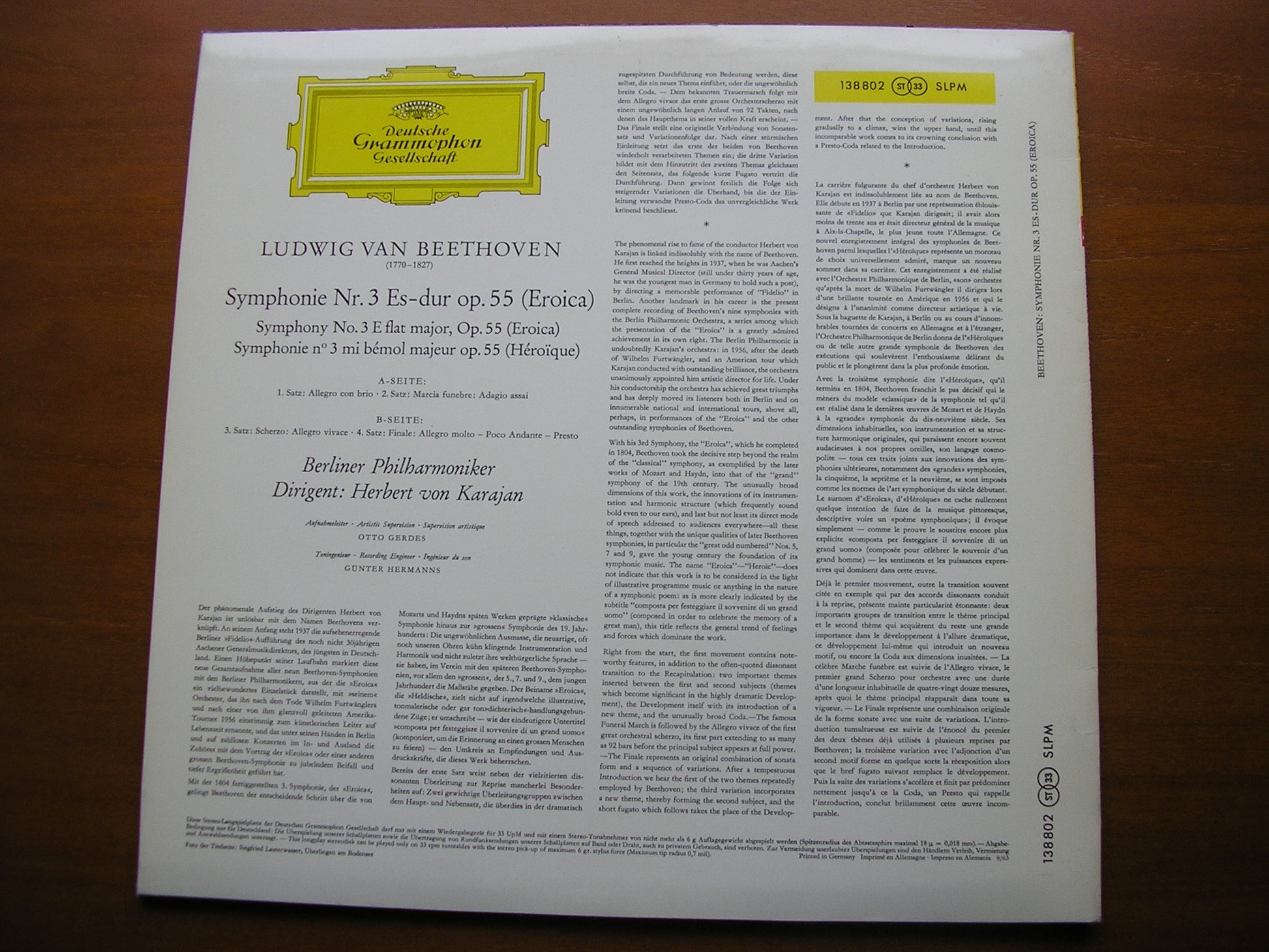 138 802  BEETHOVEN: SYMPHONY No. 3 'Eroica'      HERBERT VON KARAJAN / BERLIN PHILHARMONIC ORCHESTRA