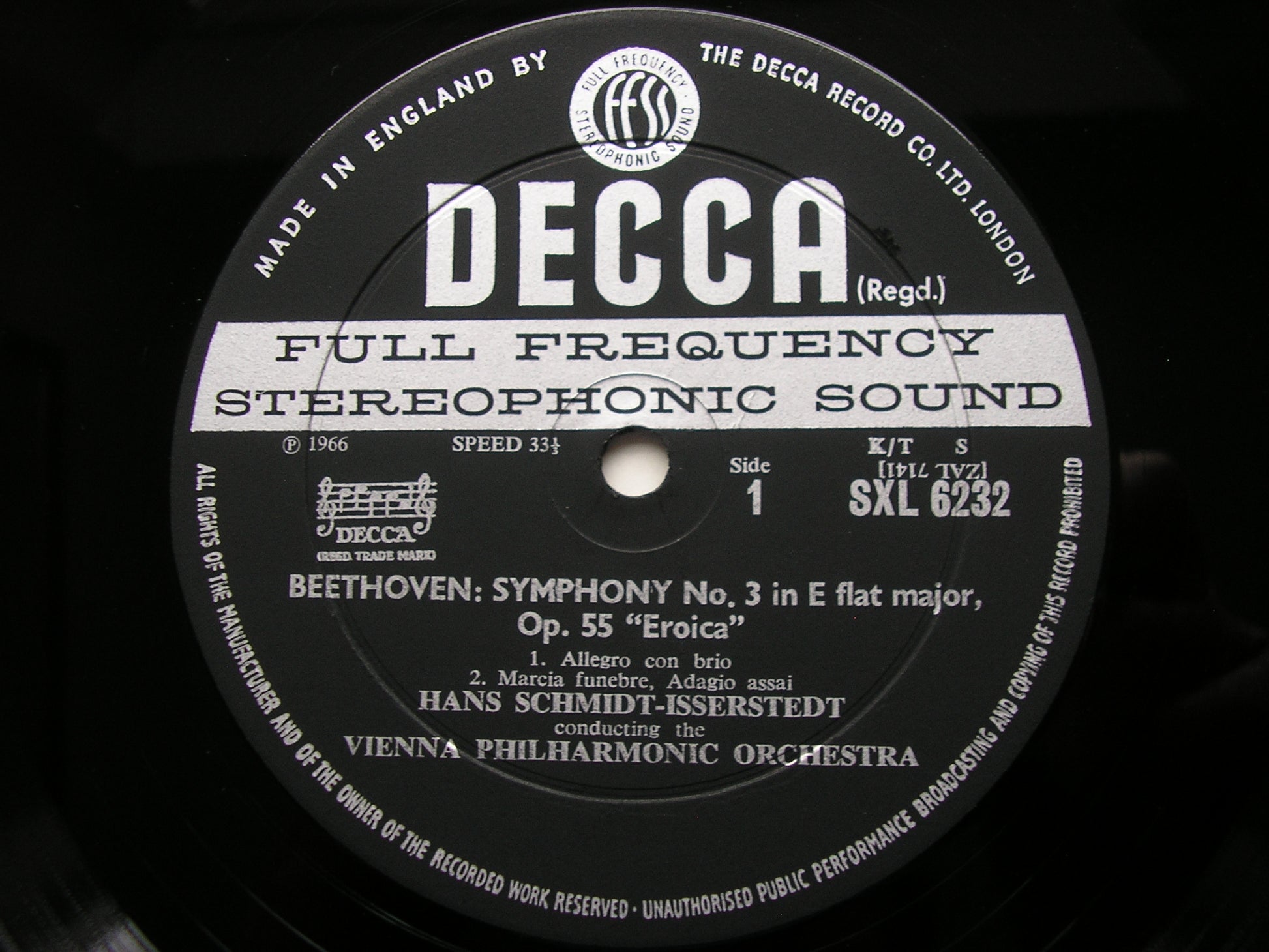 SXL 6232  BEETHOVEN: SYMPHONY No. 3 'Eroica'      HANS SCHMIDT-ISSERSTEDT / VIENNA PHILHARMONIC ORCHESTRA