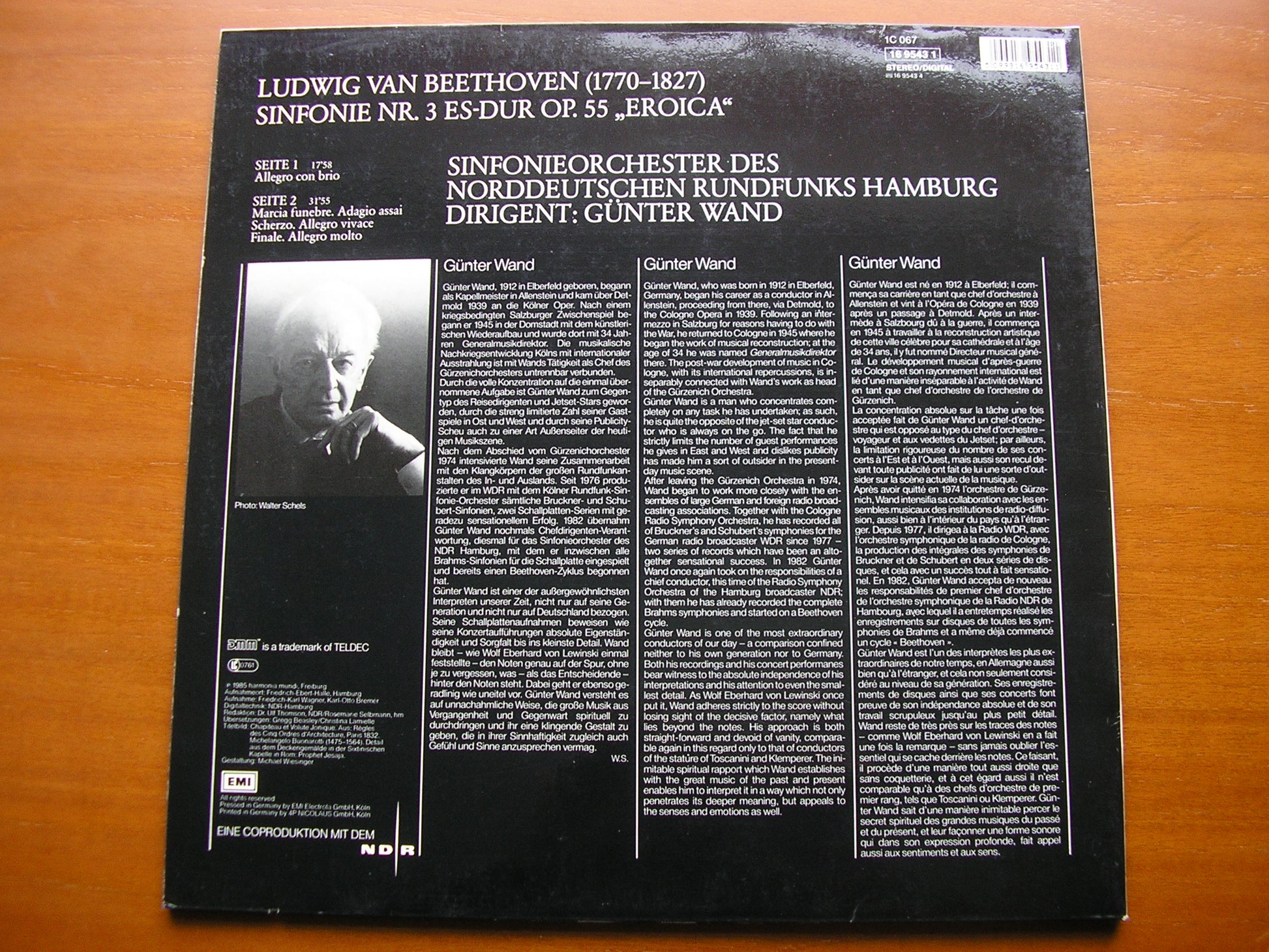 067 16 9543  BEETHOVEN: SYMPHONY No. 3      GUNTER WAND / HAMBURG RADIO SYMPHONY ORCHESTRA