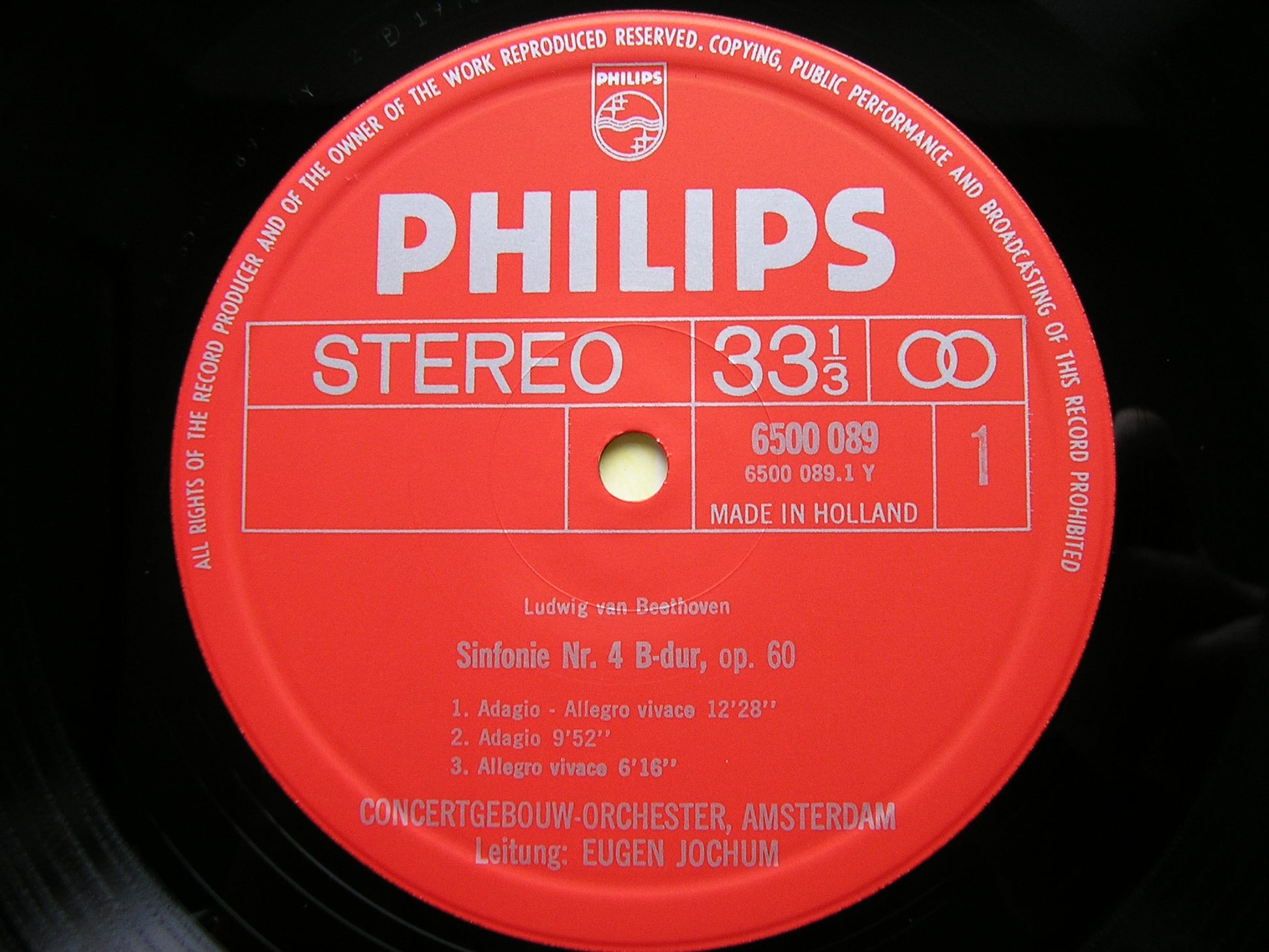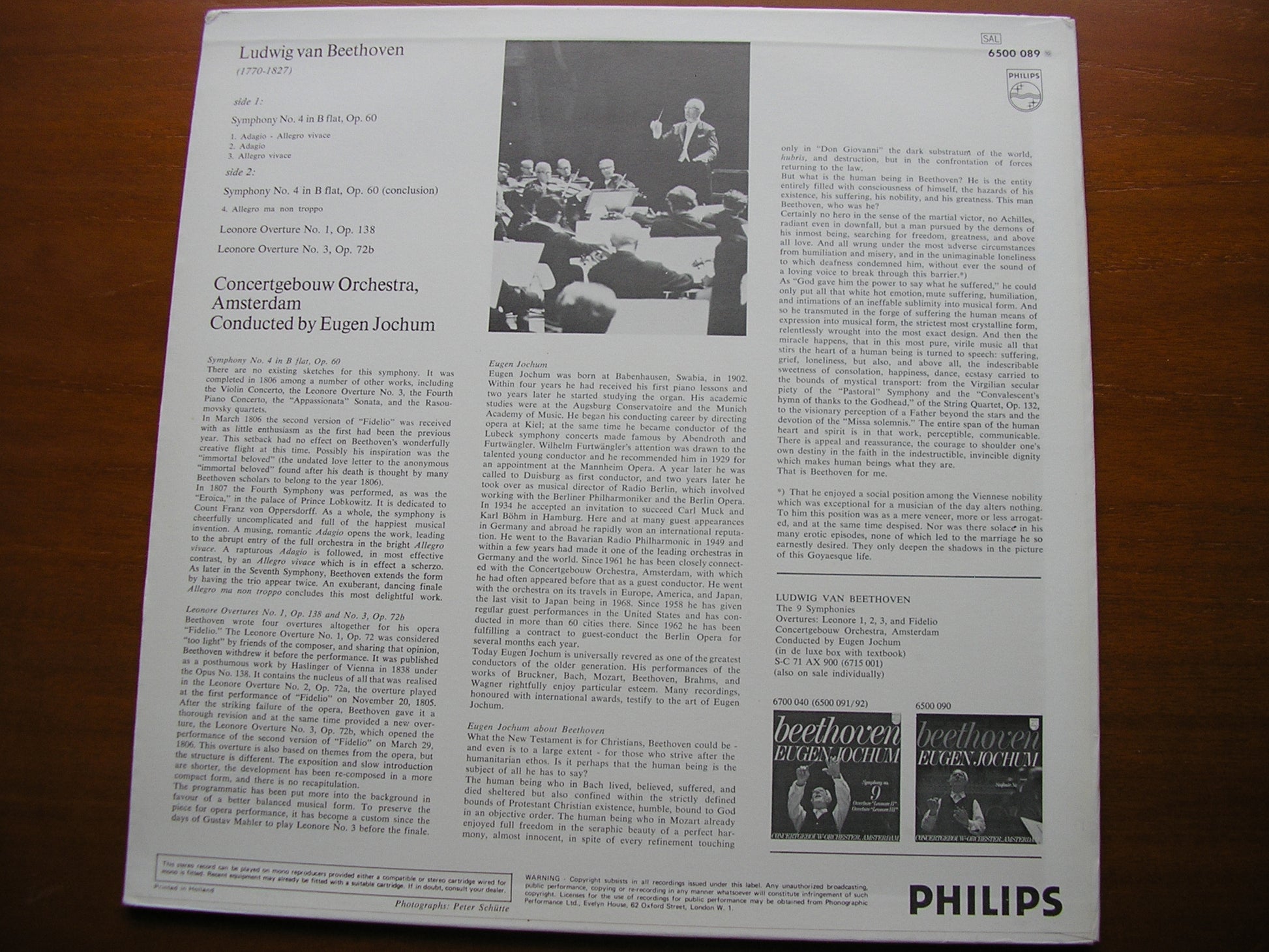 6500 089  BEETHOVEN: SYMPHONY No. 4 / OVERTURES: Leonore Nos. 1 & 3     EUGEN JOCHUM / CONCERTGEBOUW ORCHESTRA AMSTERDAM