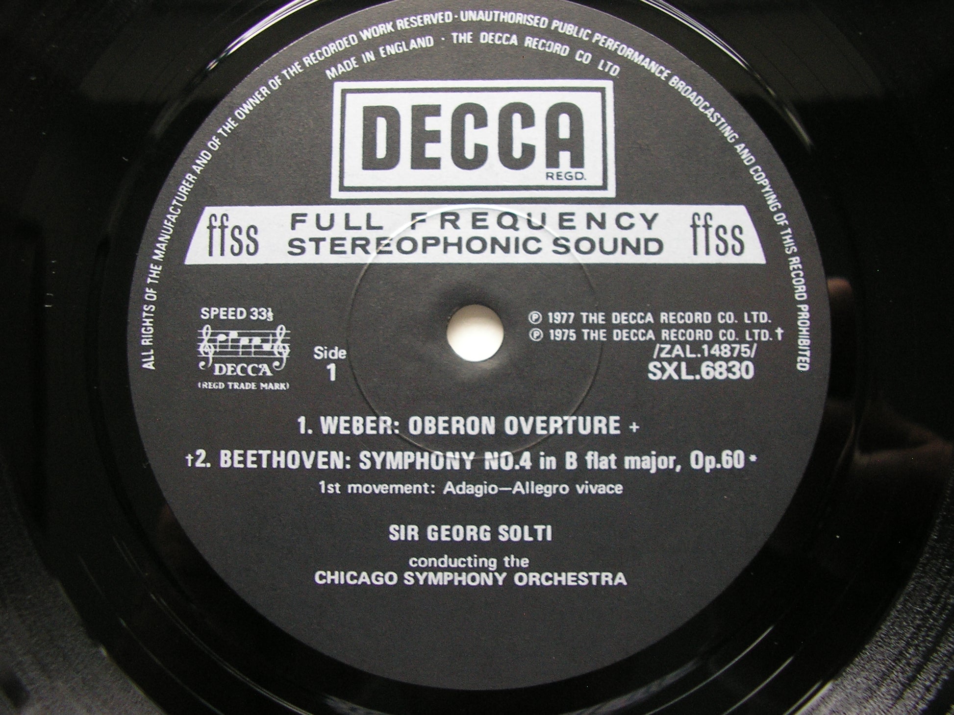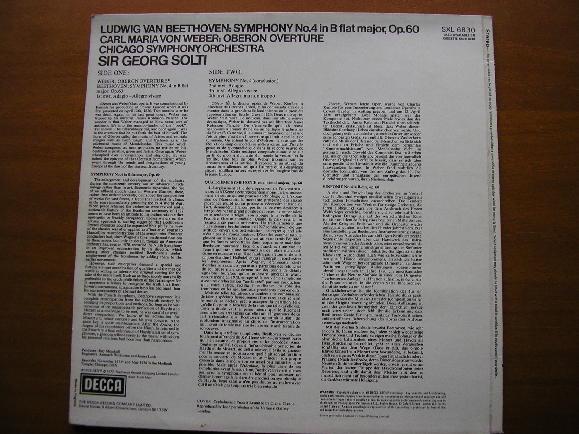 SXL 6830  BEETHOVEN: SYMPHONY No. 4 / WEBER: OVERTURE 'Oberon'      SIR GEORG SOLTI / CHICAGO SYMPHONY ORCHESTRA