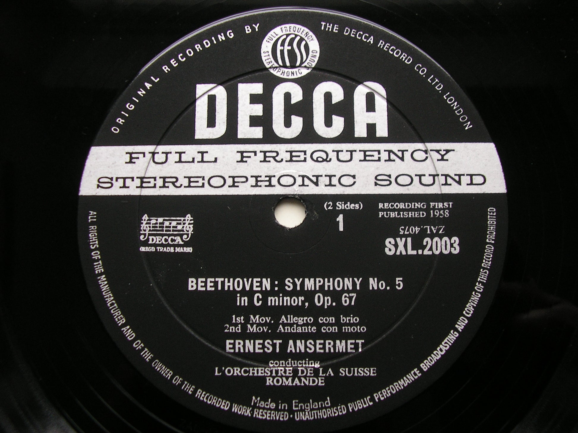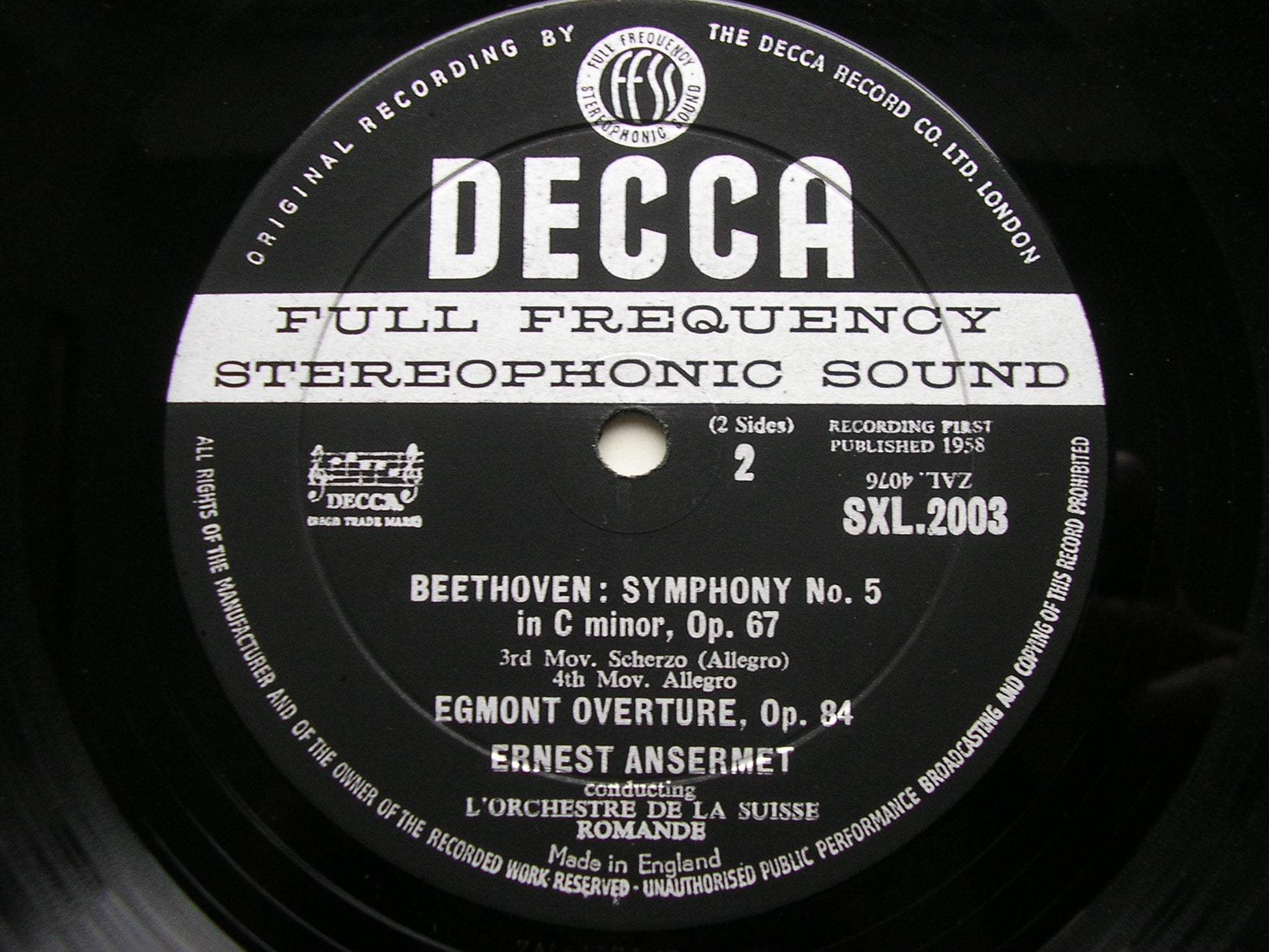SXL 2003  BEETHOVEN: SYMPHONY No. 5 / EGMONT OVERTURE    ERNEST ANSERMET / SIUSSE ROMANDE ORCHESTRA