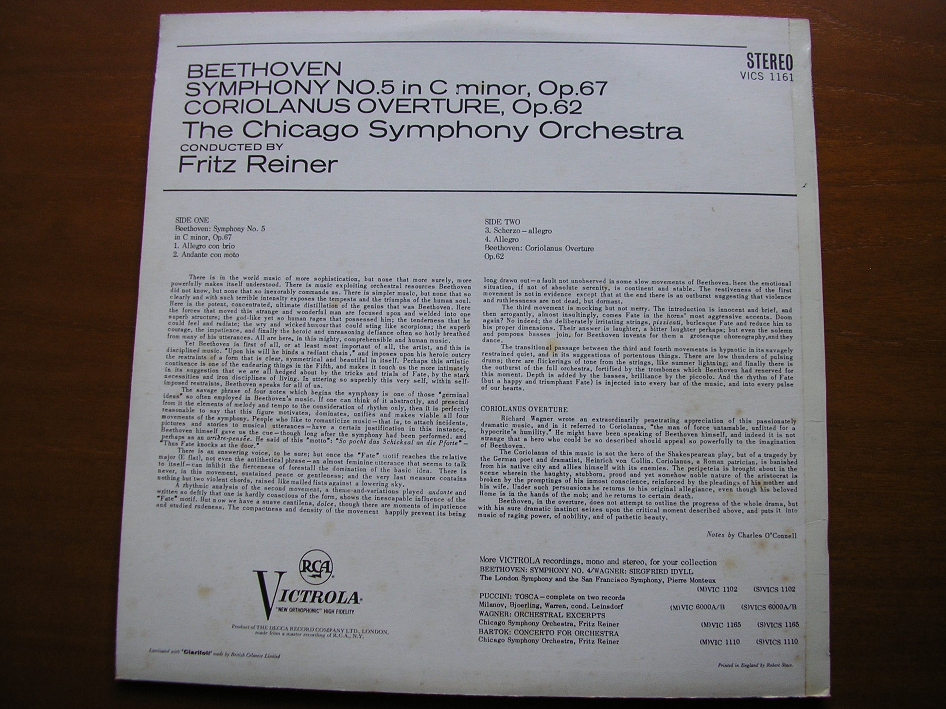 VICS 1161  BEETHOVEN: SYMPHONY No. 5 / CORIOLANUS     FRITZ REINER / CHICAGO SYMPHONY ORCHESTRA