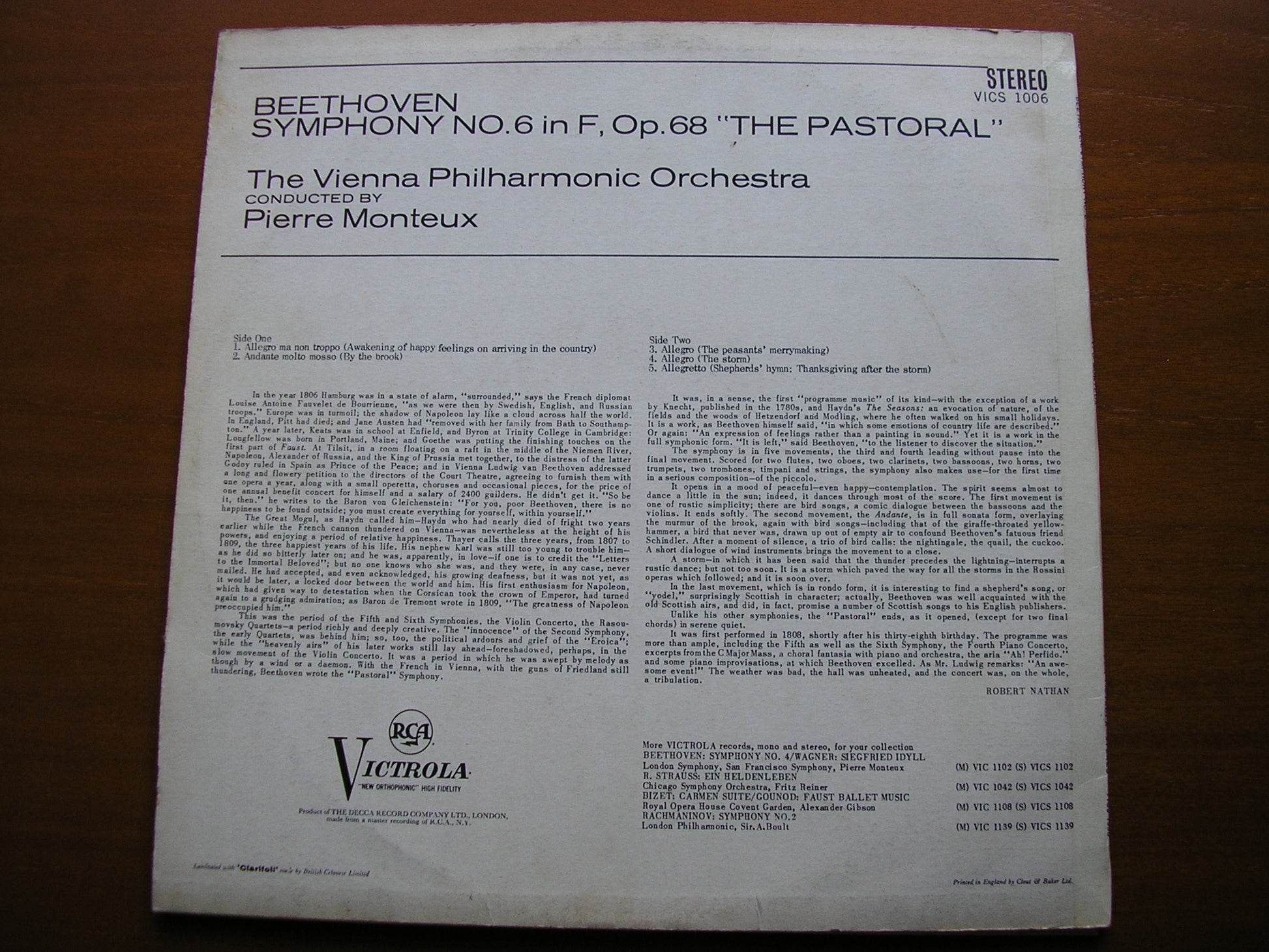 BEETHOVEN: SYMPHONY No. 6 'Pastoral' MONTEUX / VIENNA PHILHARMONIC VICS 1006