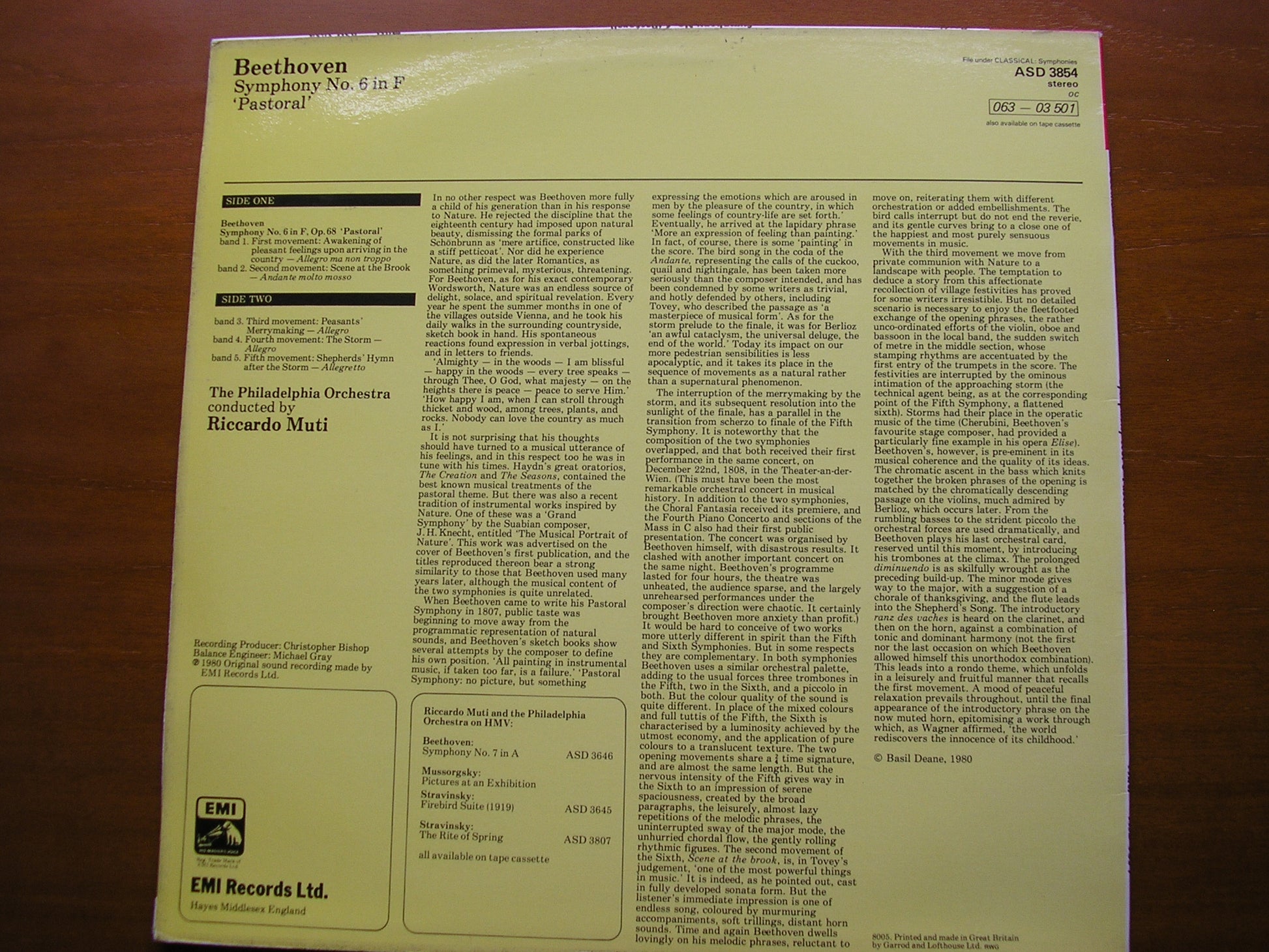 ASD 3854 BEETHOVEN: SYMPHONY No. 6 'PASTORAL' RICCARDO MUTI / PHILADELPHIA ORCHESTRA