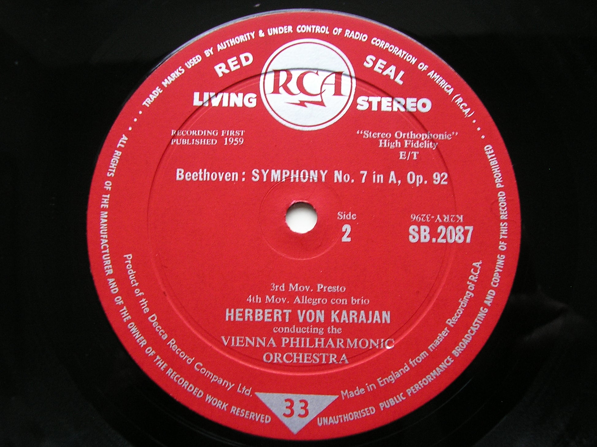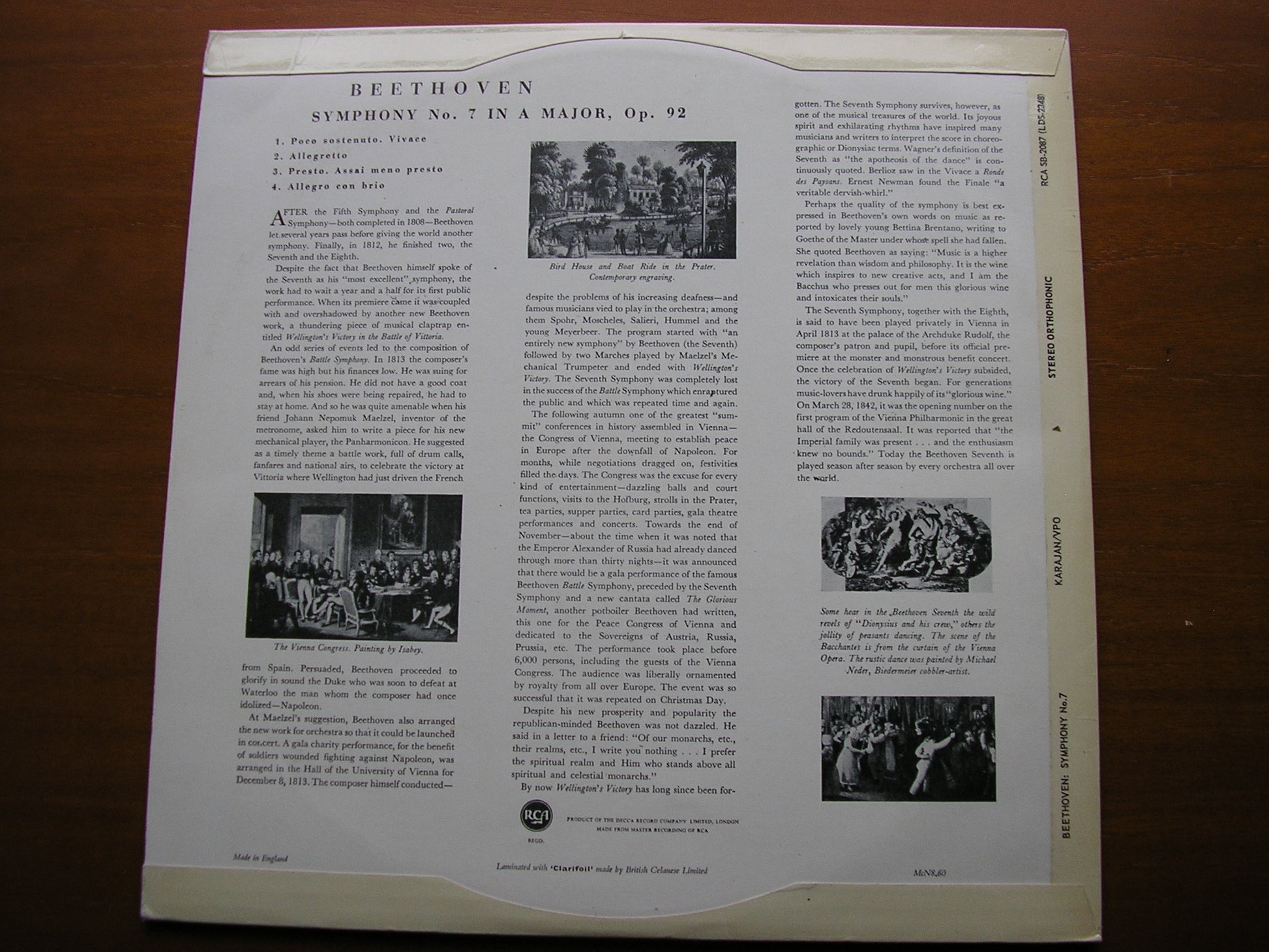 SB 2087  BEETHOVEN: SYMPHONY No. 7     HERBERT VON KARAJAN / VIENNA PHILHARMONIC ORCHESTRA