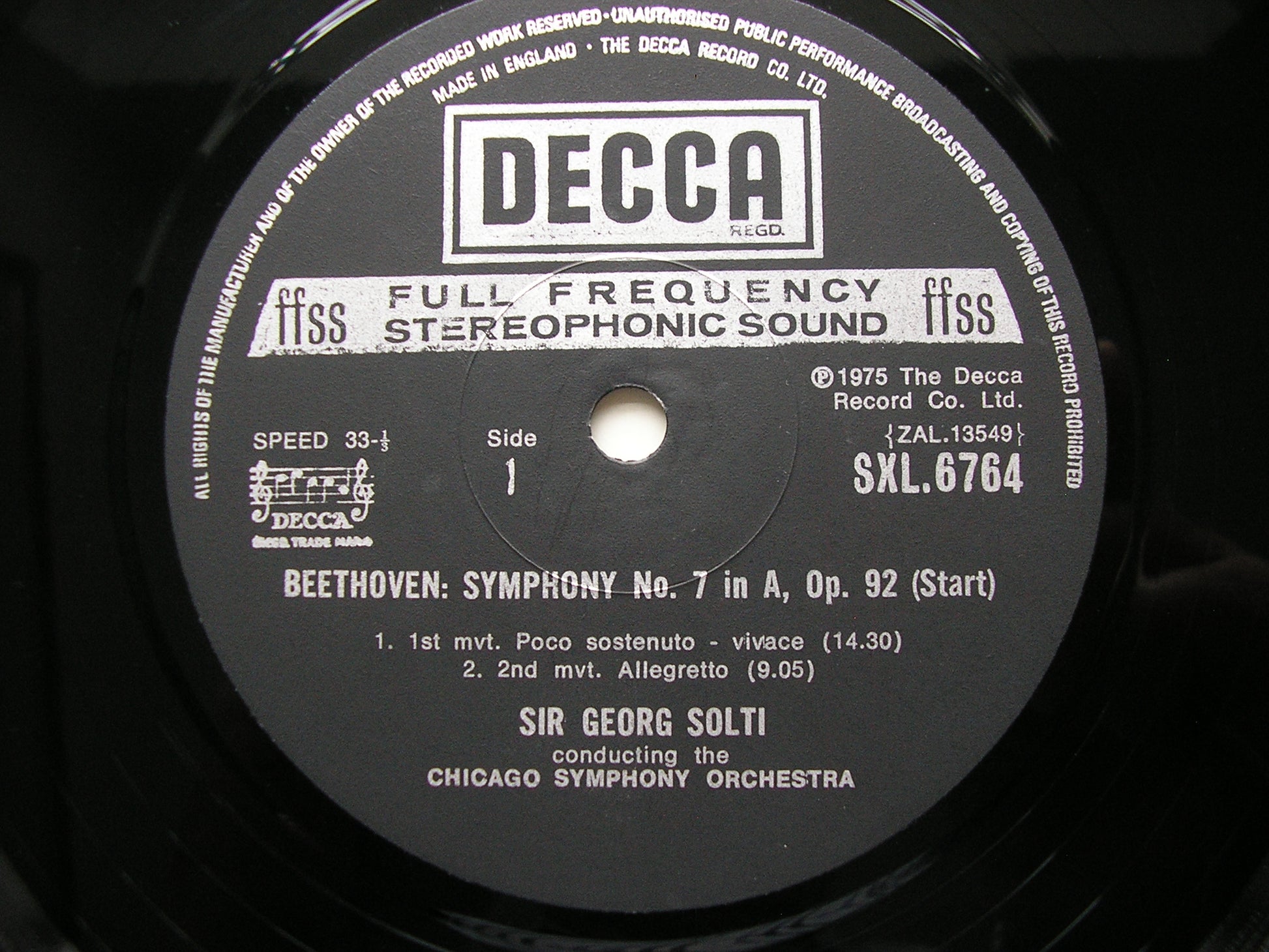 SXL 6764  BEETHOVEN: SYMPHONY No. 7 / OVERTURE 'Coriolan'        SIR GEORG SOLTI / CHICAGO SYMPHONY ORCHESTRA