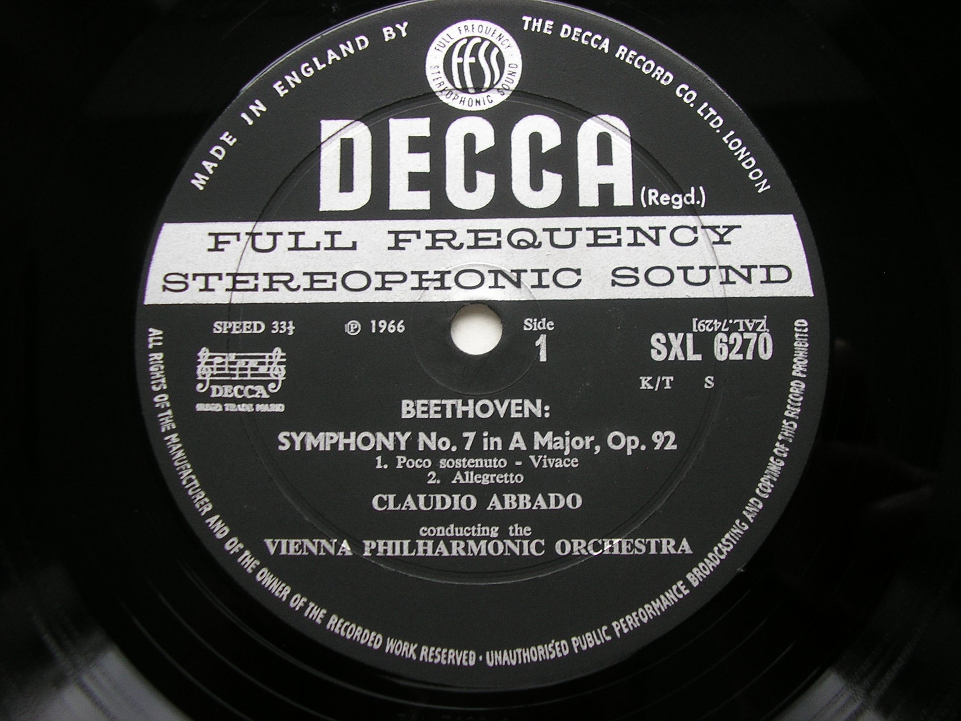 SXL 6270  BEETHOVEN: SYMPHONY No. 7 / OVERTURE Prometheus     CLAUDIO ABBADO / VIENNA PHILHARMONIC ORCHESTRA