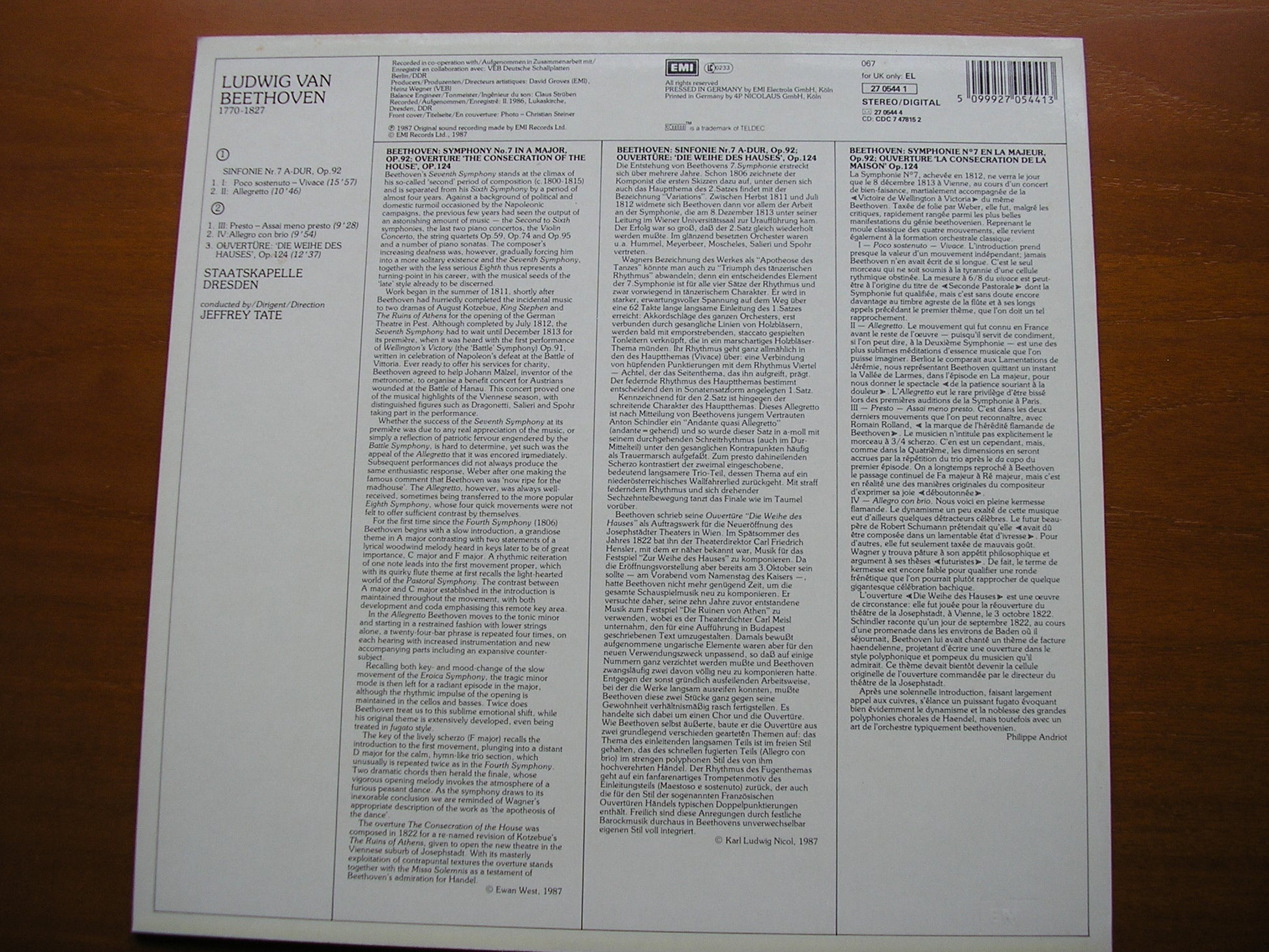 27 0544  BEETHOVEN: SYMPHONY No. 7 / OVERTURE The Consecration of the House    JEFFFREY TATE / ENGLISH CHAMBER ORCHESTRA