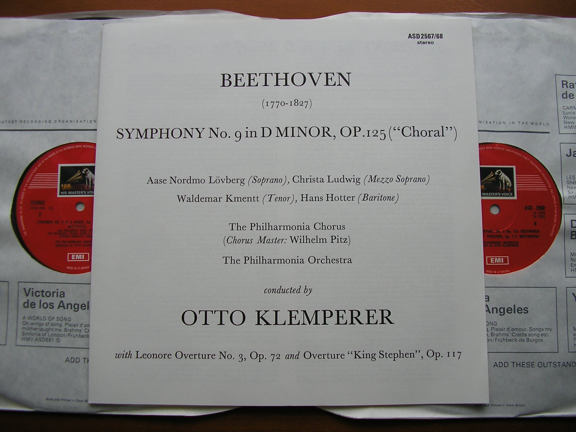 BEETHOVEN: SYMPHONY No. 9 / OVERTURES Leonora No. 3 / King Stephen SOLOISTS / PHILHARMONIA / KLEMPERER 2 LP SLS 798