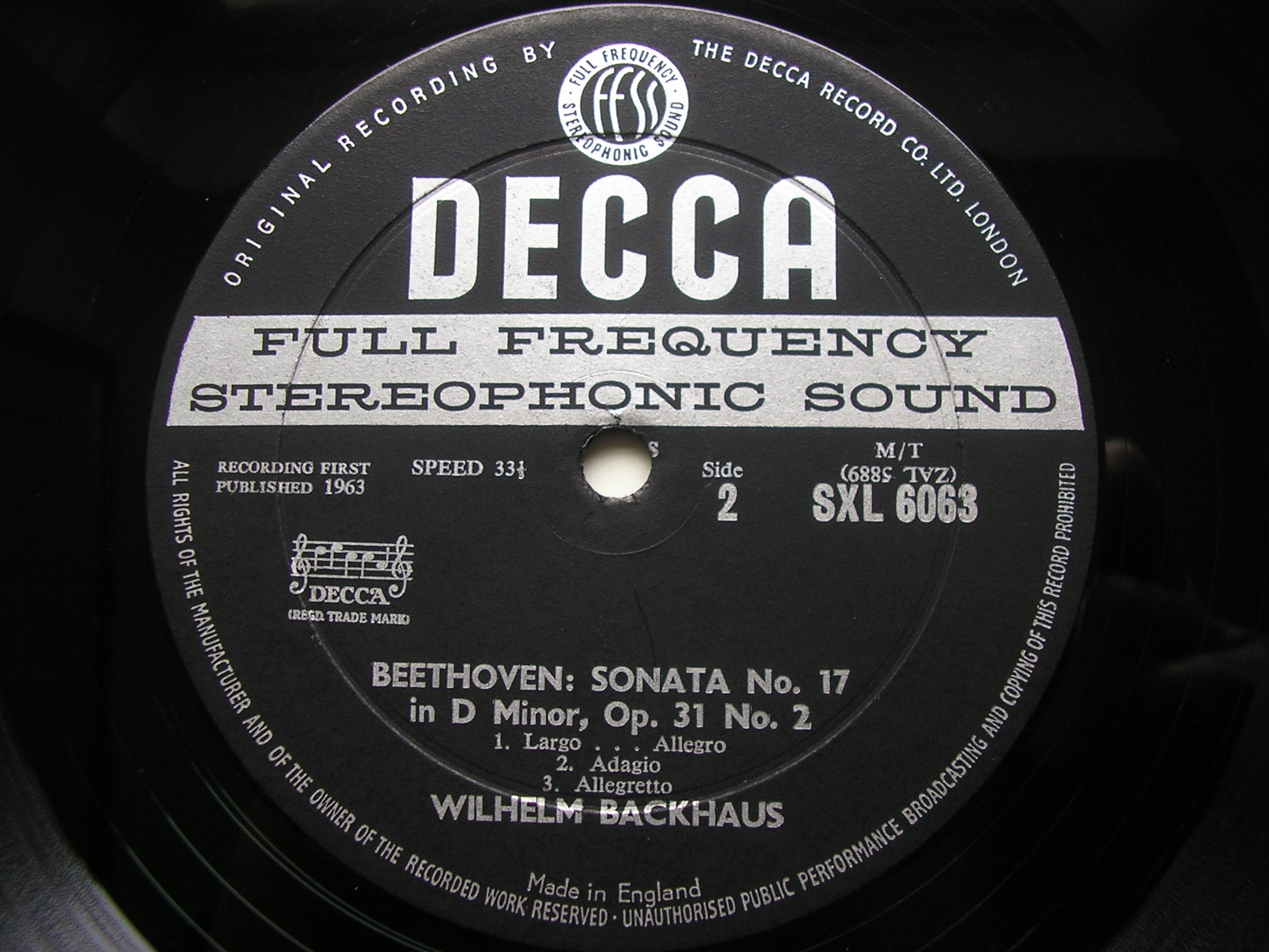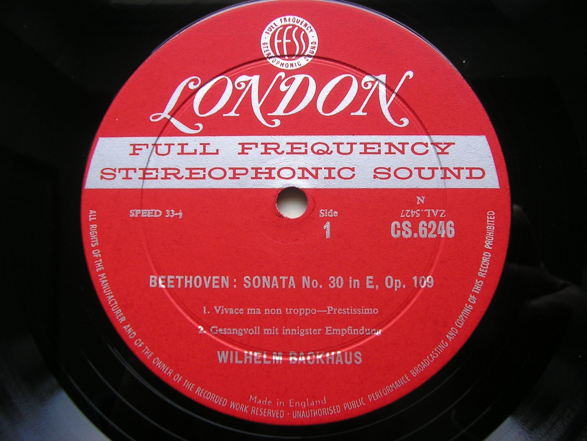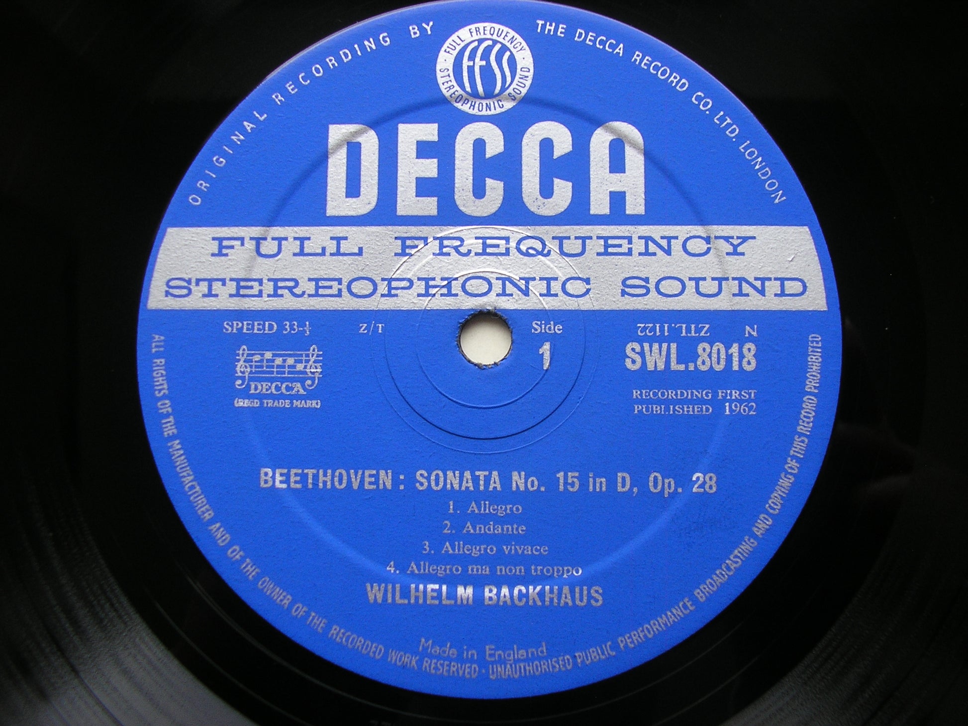 A hybrid set if ever there was one. Neither Decca nor London made a serious attempt to present Backhaus' second survey of the Beethoven sonatas - a project lamed by the refusal of Backhaus to re-record the  Hammerklavier sonata - until the early 70s, when Decca issued them in a 10 LP box set*. Despite having recorded all 32 sonatas in mono in the early 1950s, Decca asked Backhaus to re-record the most popular sonatas in stereo and the first two sonatas appeared in 1960 (SXL 2241 / CS 6161). Six more were issued in the UK in 1962 on three SWL 10" medium play records, but not in America, where they were issued on LP. Over the next 7 years the remainder of the cycle was issued on LP, except the mono Hammerklavier, which was electronically reprocessed for inclusion in the 10 LP box set.
