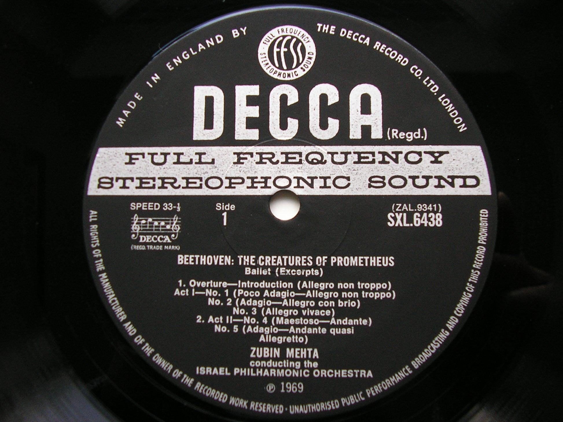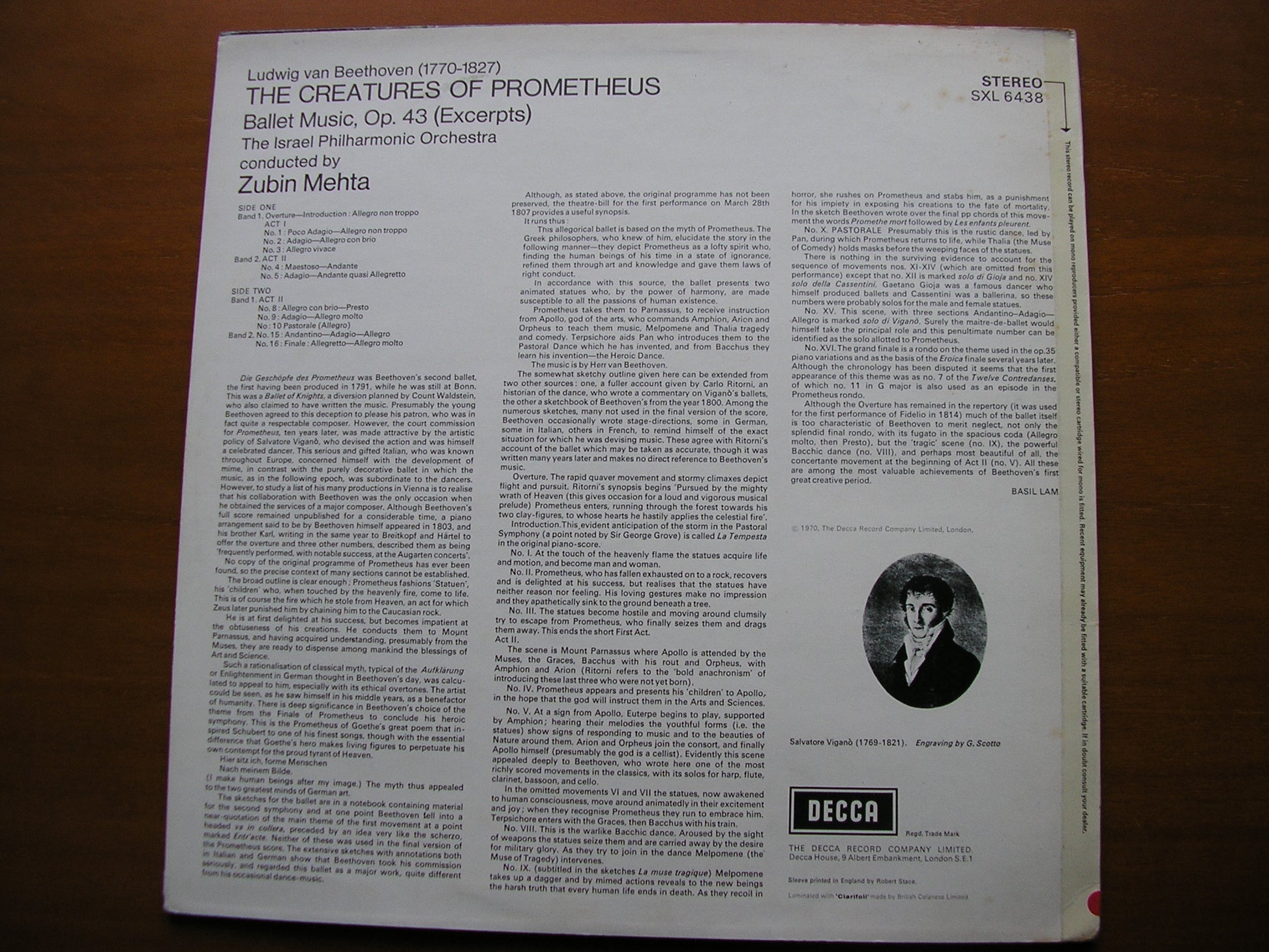 SXL 6438  BEETHOVEN: THE CREATURES OF PROMETHEUS     ZUBIN MEHTA / ISRAEL PHILHARMONIC ORCHESTRA