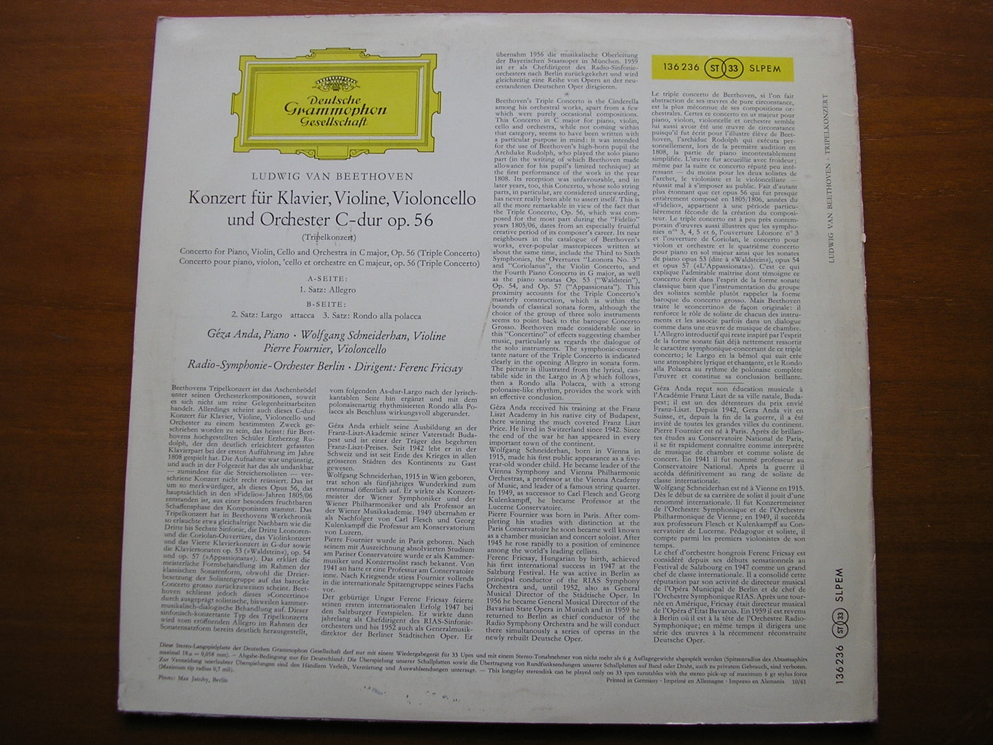 BEETHOVEN: TRIPLE CONCERTO ANDA / SCHEIDERHAN / FOURNIER / FRICSAY DG 136 236