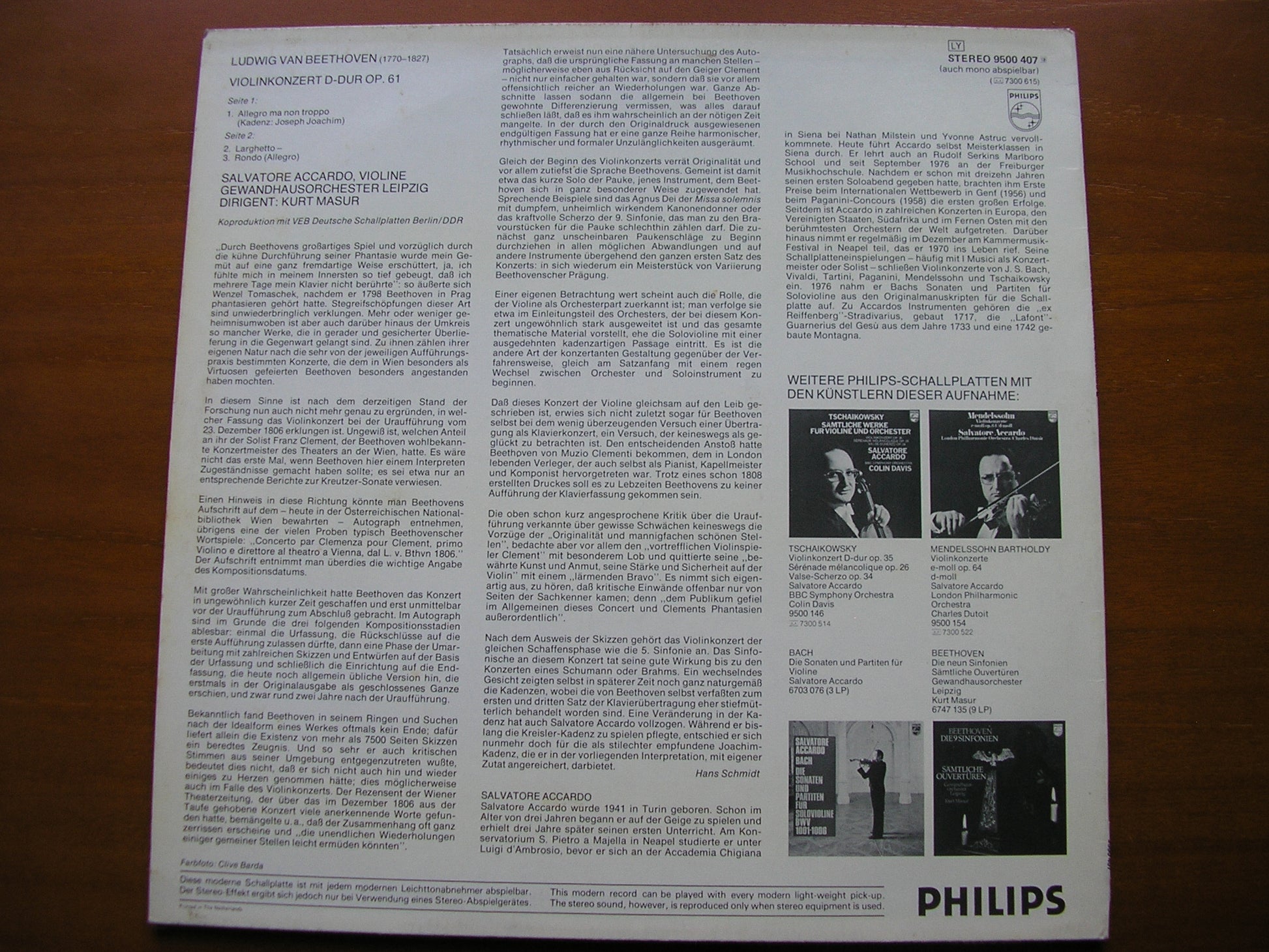 BEETHOVEN: VIOLIN CONCERTO ACCARDO / LEIPZIG GEWANDHAUS / MASUR 9500 407