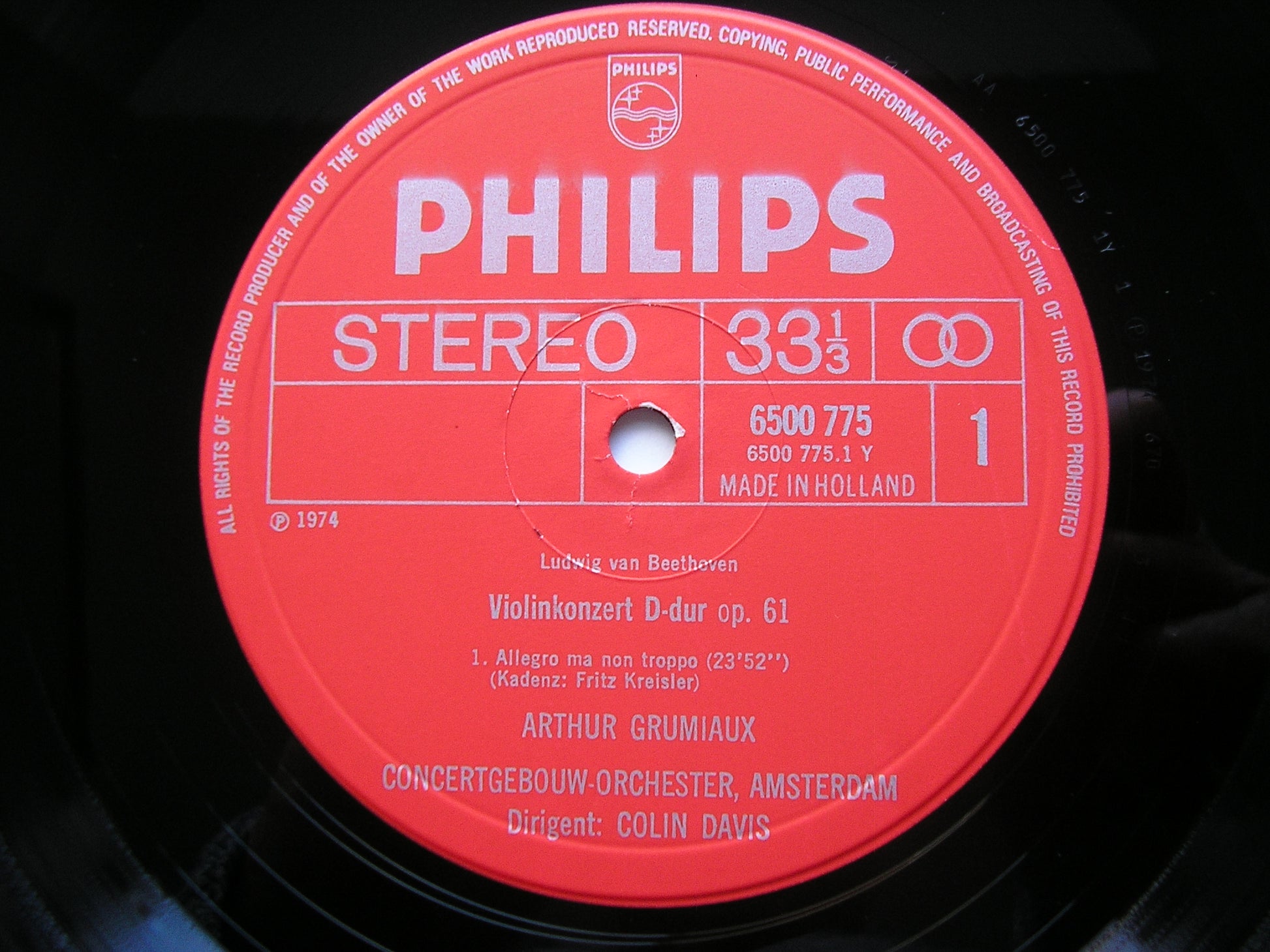 6500 775 BEETHOVEN: VIOLIN CONCERTO / ARTHUR GRUMIAUX / CONCERTGEBOUW ORCHESTRA AMSTERDAM / COLIN DAVIS