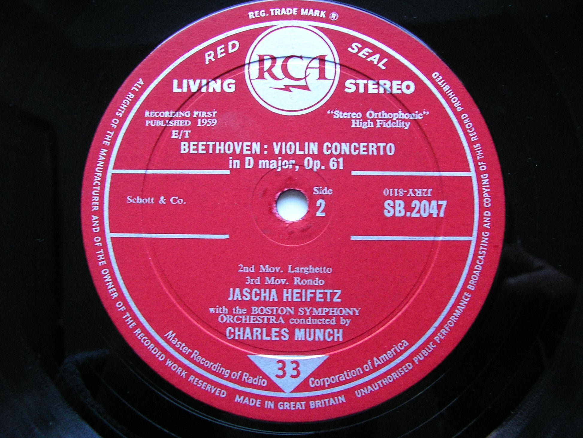 SB 2047  BEETHOVEN:  VIOLIN CONCERTO   JASCHA HEIFETZ / BOSTON SYMPHONY ORCHESTRA / CHARLES MUNCH