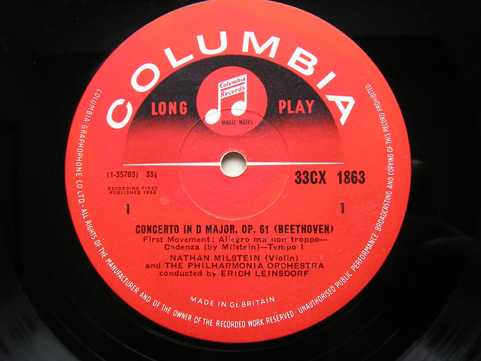 33CX 1863  BEETHOVEN: VIOLIN CONCERTO      NATHAN MILSTEIN / PHILHARMONIA ORCHESTRA / ERICH LEINSDORF