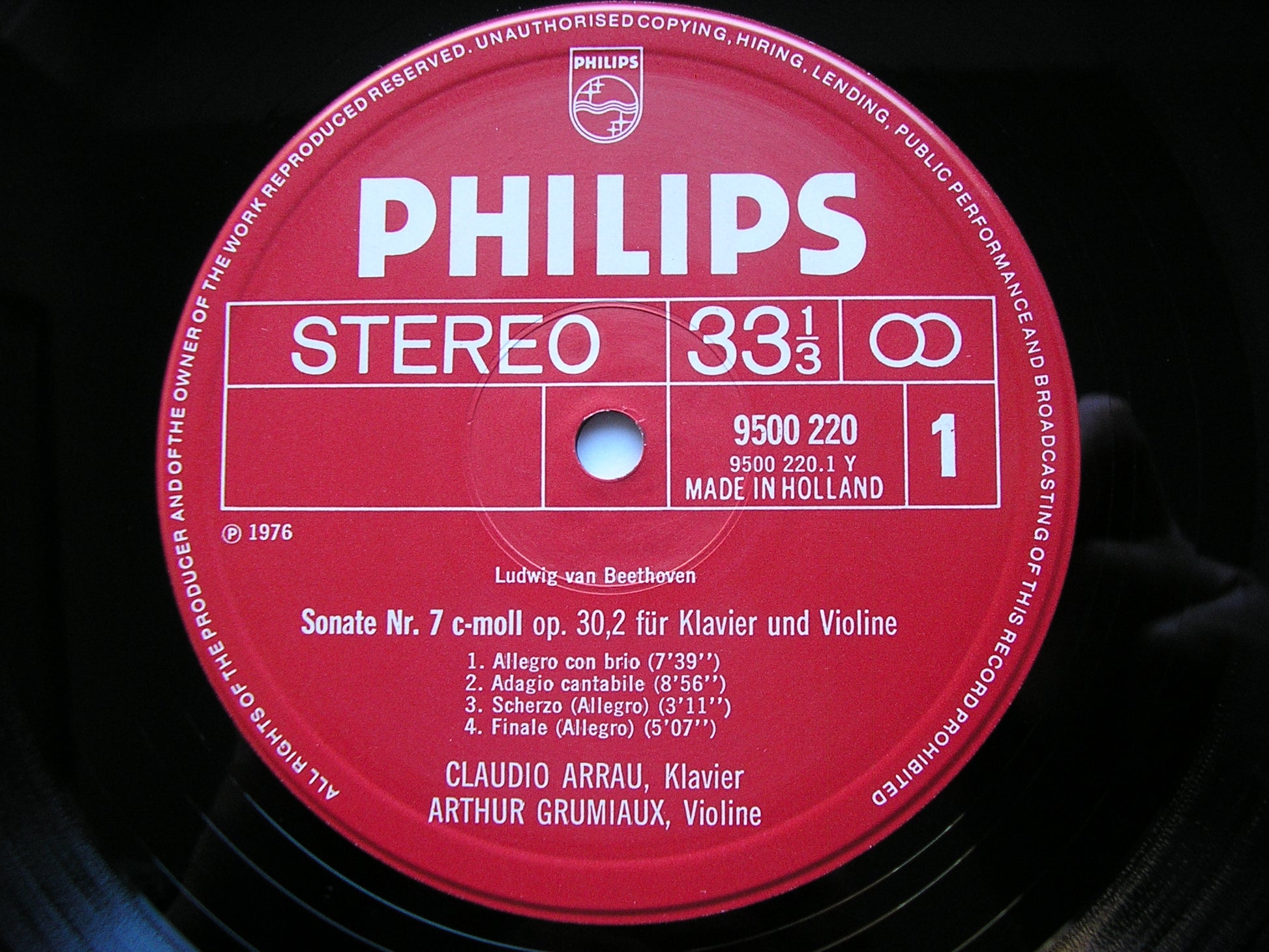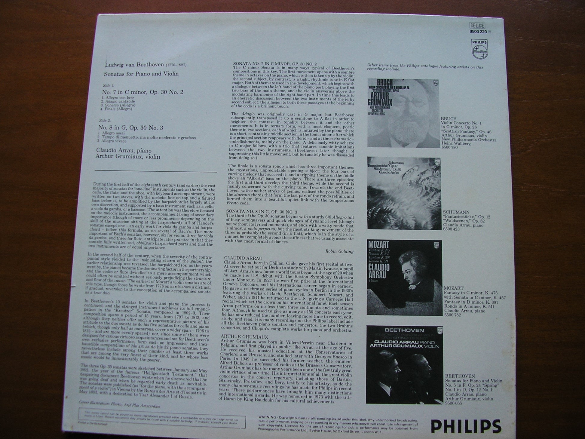 9500 220  BEETHOVEN: VIOLIN SONATAS Op. 30 Nos. 7 & 8     ARTHUR GRUMIAUX / CLAUDIO ARRAU