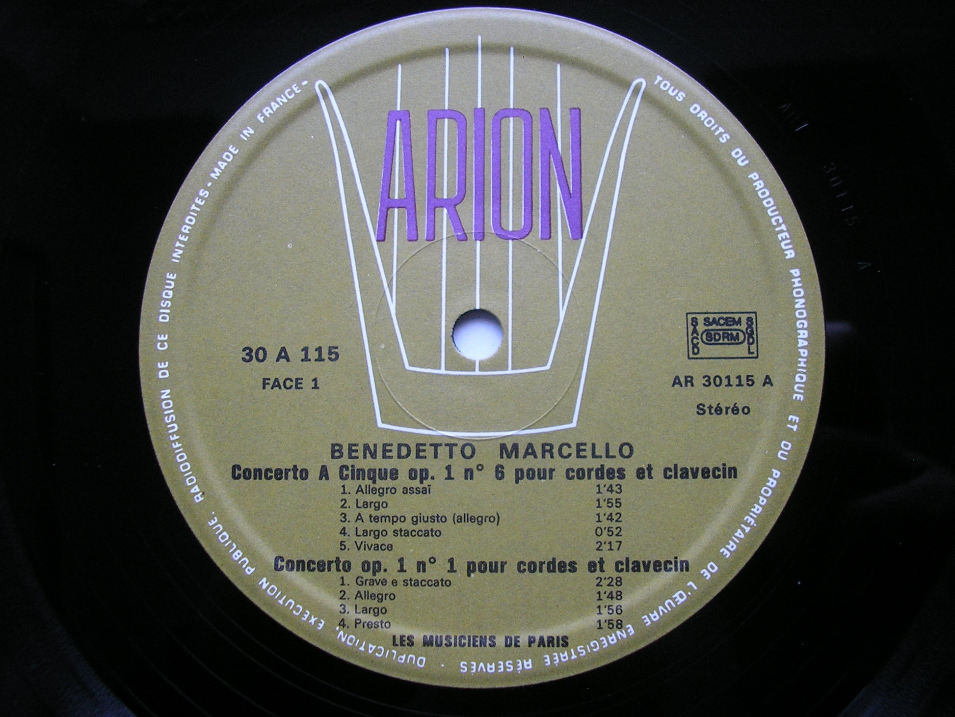 30 A 115  MARCELLO: OBOE CONCERTO / TWO HARPSICHORD CONCERTOS / CONCERTO FOR STRINGS     LUCIEN DEBRAY / LES MUSICIENS DE PARIS