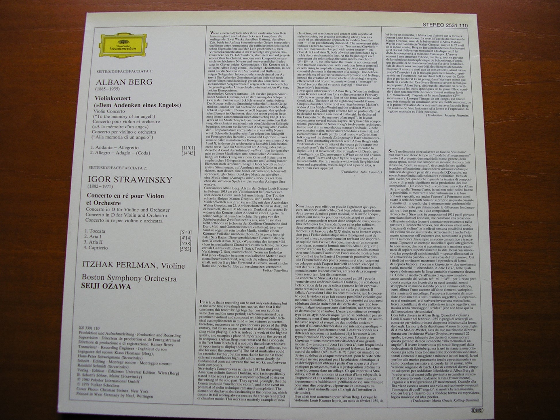 2531 110  BERG: VIOLIN CONCERTO / STRAVINSKY: VIOLIN CONCERTO   ITZHAK PERLMAN / BOSTON SYMPHONY ORCHESTRA / SEIJI OZAWA