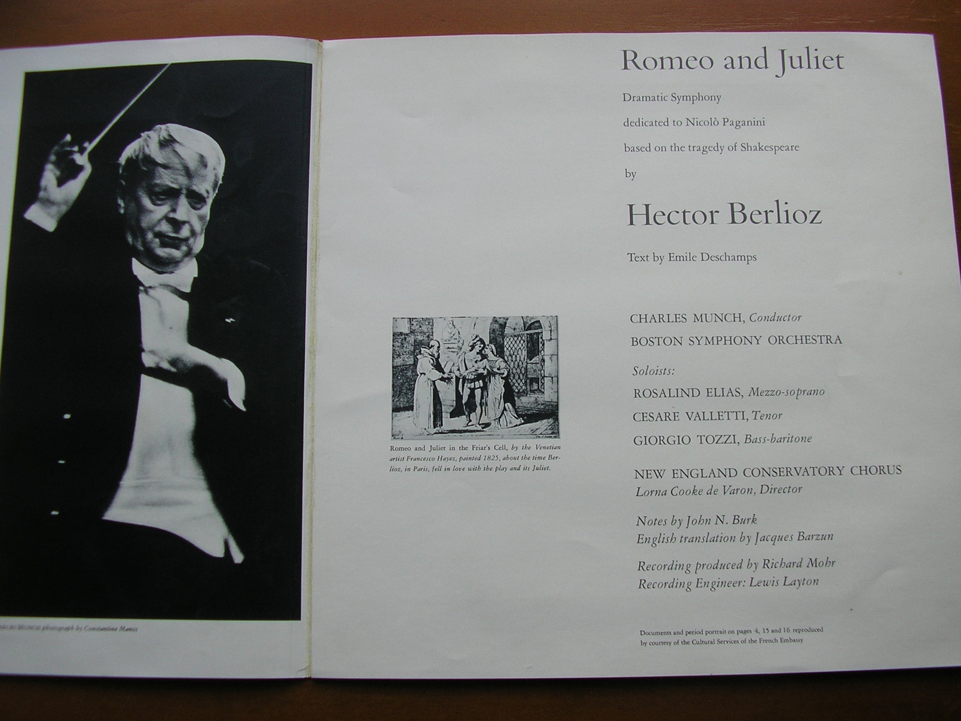 BERLIOZ: ROMEO ET JULIETTE ELIAS / VALLETTI / TOZZI / BOSTON SYMPHONY / CHARLES MUNCH 2LP LDS 6098