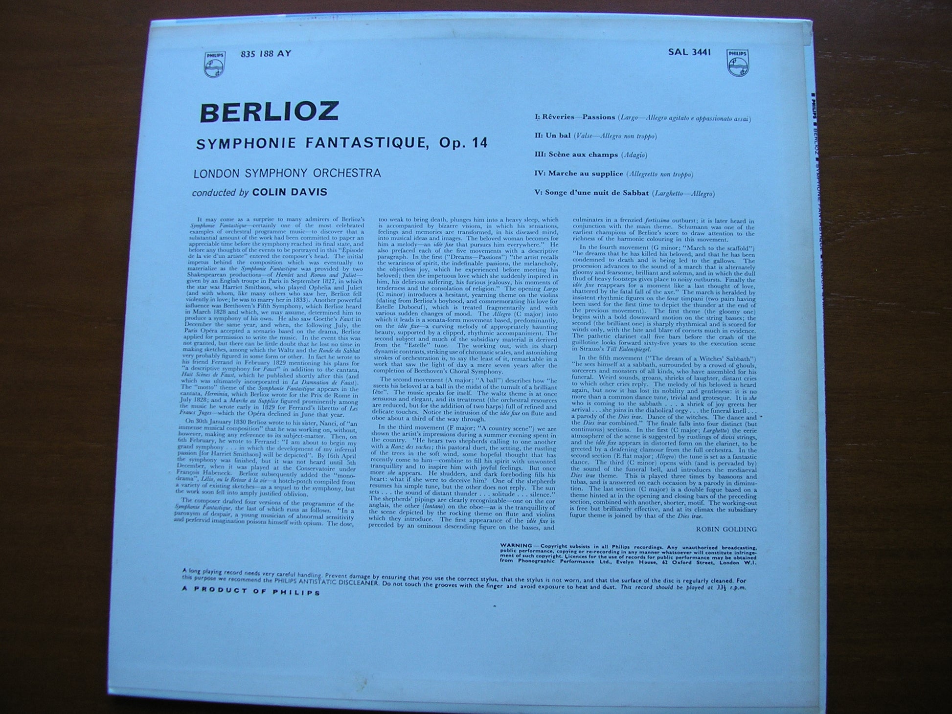SAL 3441  BERLIOZ: SYMPHONIE FANTASTIQUE    COLIN DAVIS / LONDON SYMPHONY ORCHESTRA
