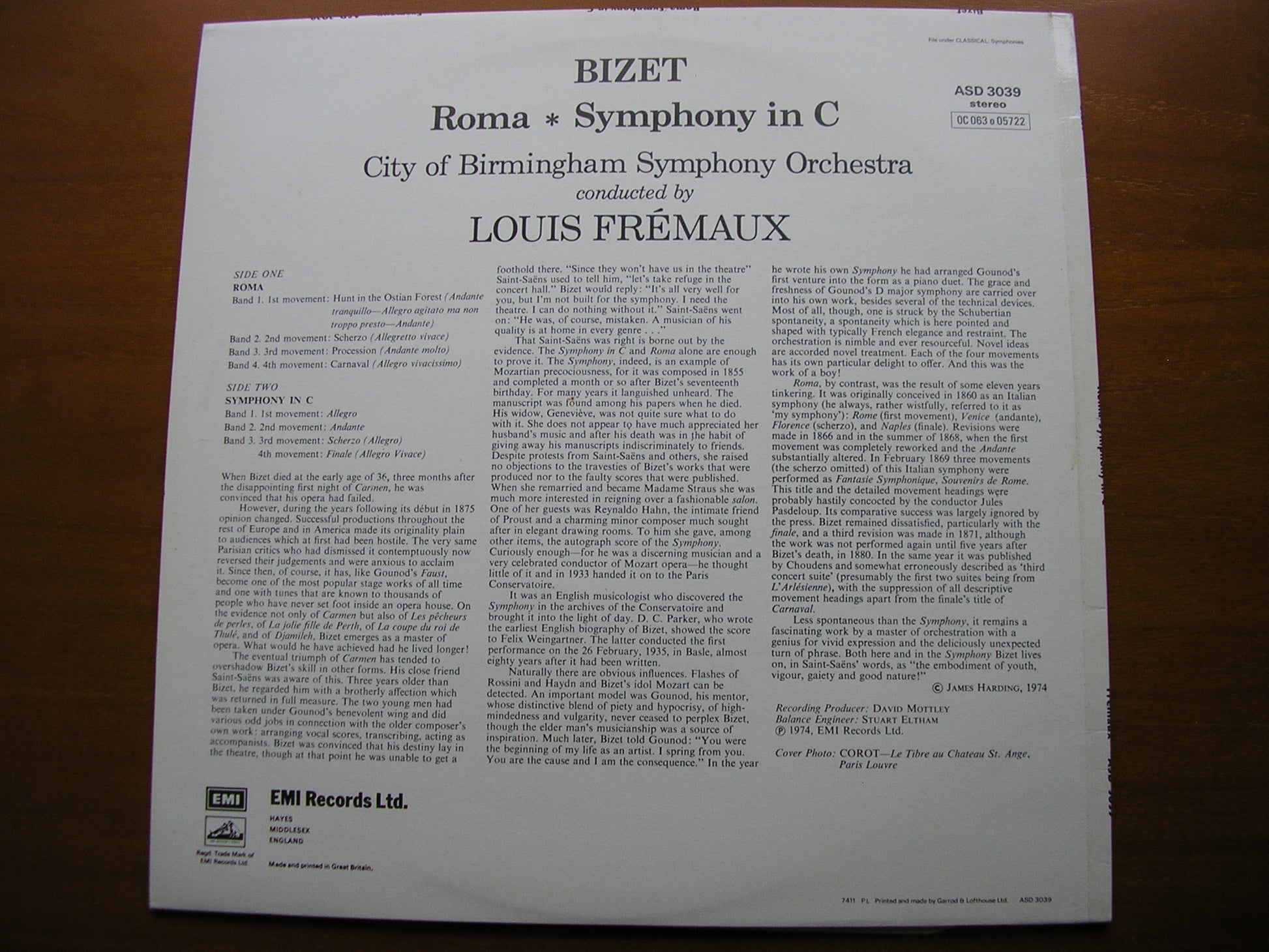 ASD 3039  BIZET: ROMA / SYMPHONY in C      LOUIS FREMAUX / CITY OF BIRMINGHAM SYMPHONY ORCHESTRA