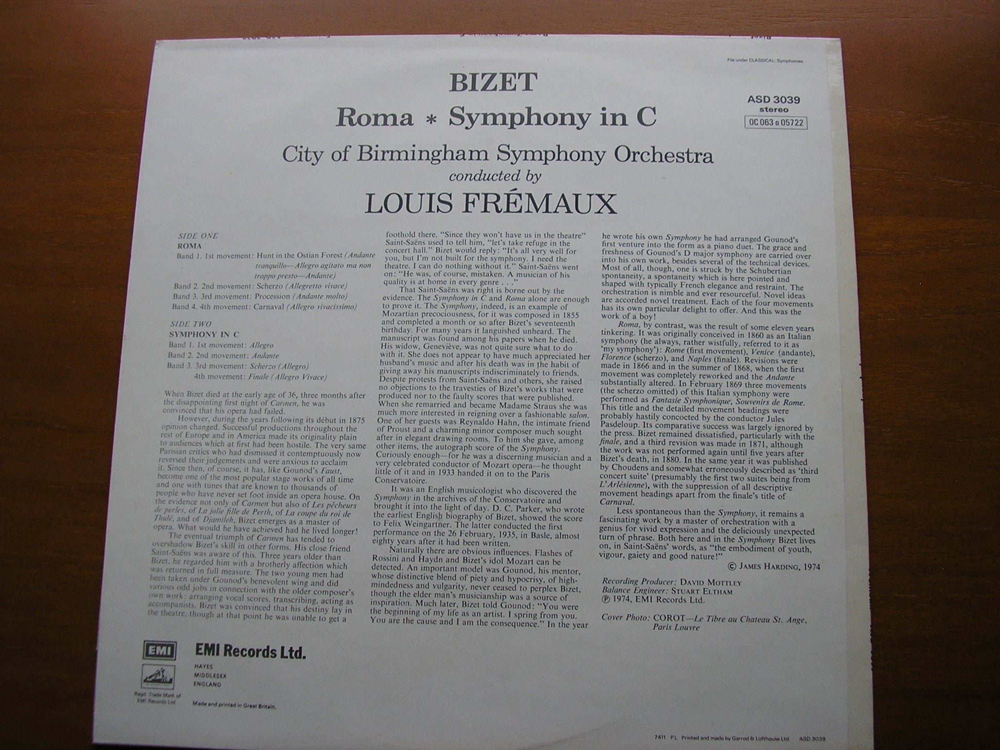 ASD 3039  BIZET: SYMPHONY in C / ROMA      LOUIS FREMAUX / CITY OF BIRMINGHAM SYMPHONY ORCHESTRA