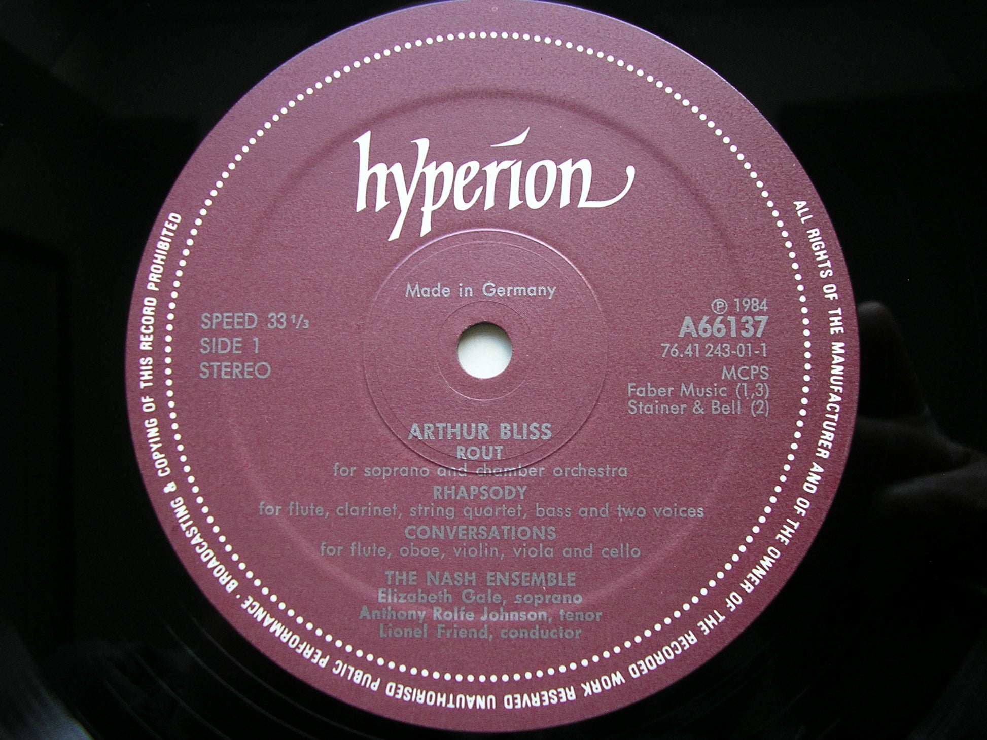 A66137  BLISS: ROUT / RHAPSODY / CONVERSATIONS / MADAM NOY / THE WOMEN OF YUEH / QUINTET     ELIZABETH GALE / ANTHONY ROLFE JOHNSON / THE NASH ENSEMBLE / LIONEL FRIEND