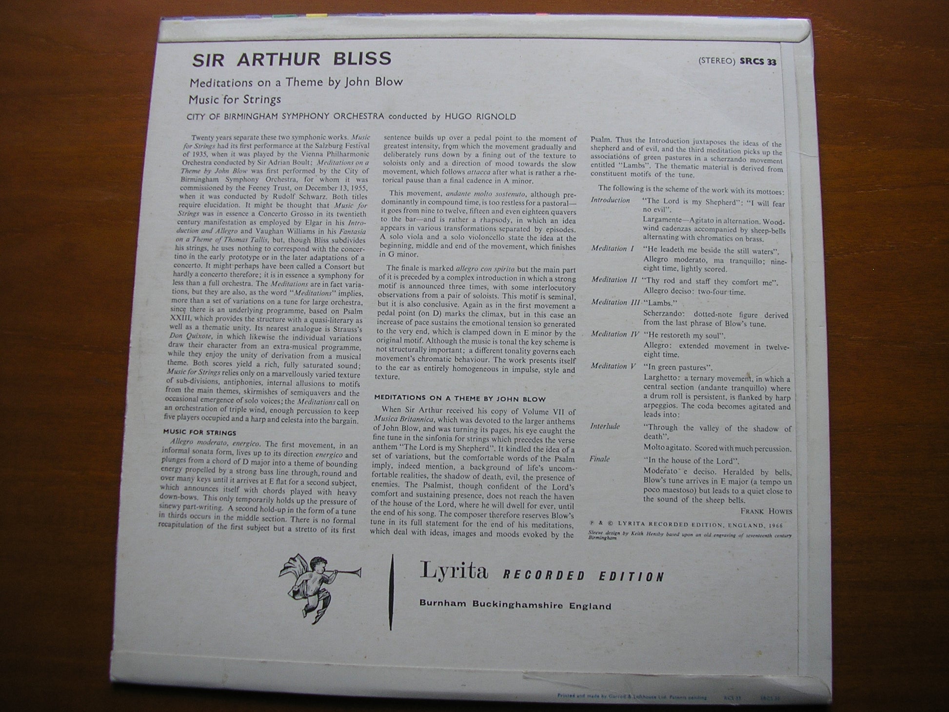 SRCS 33  BLISS: MEDITATIONS ON A THEME BY JOHN BLOW  / MUSIC FOR STRINGS   HUGO RIGNOLD / CITY OF BIRMINGHAM SYMPHONY ORCHESTRA
