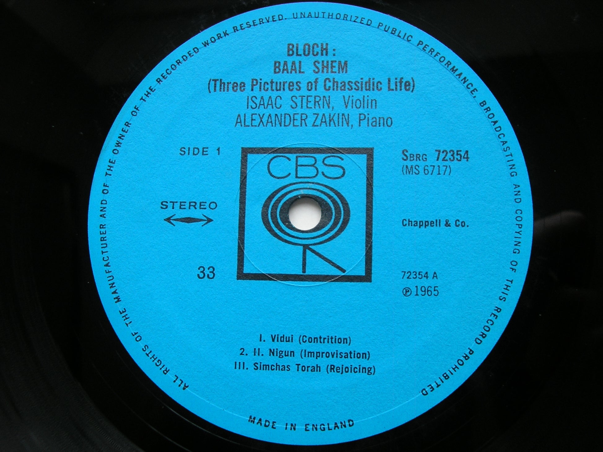 SBRG 72354  BLOCH: BAAL SHEM / SONATA No. 1 for VIOLIN & PIANO     ISAAC STERN / ALEXANDER ZAKIN