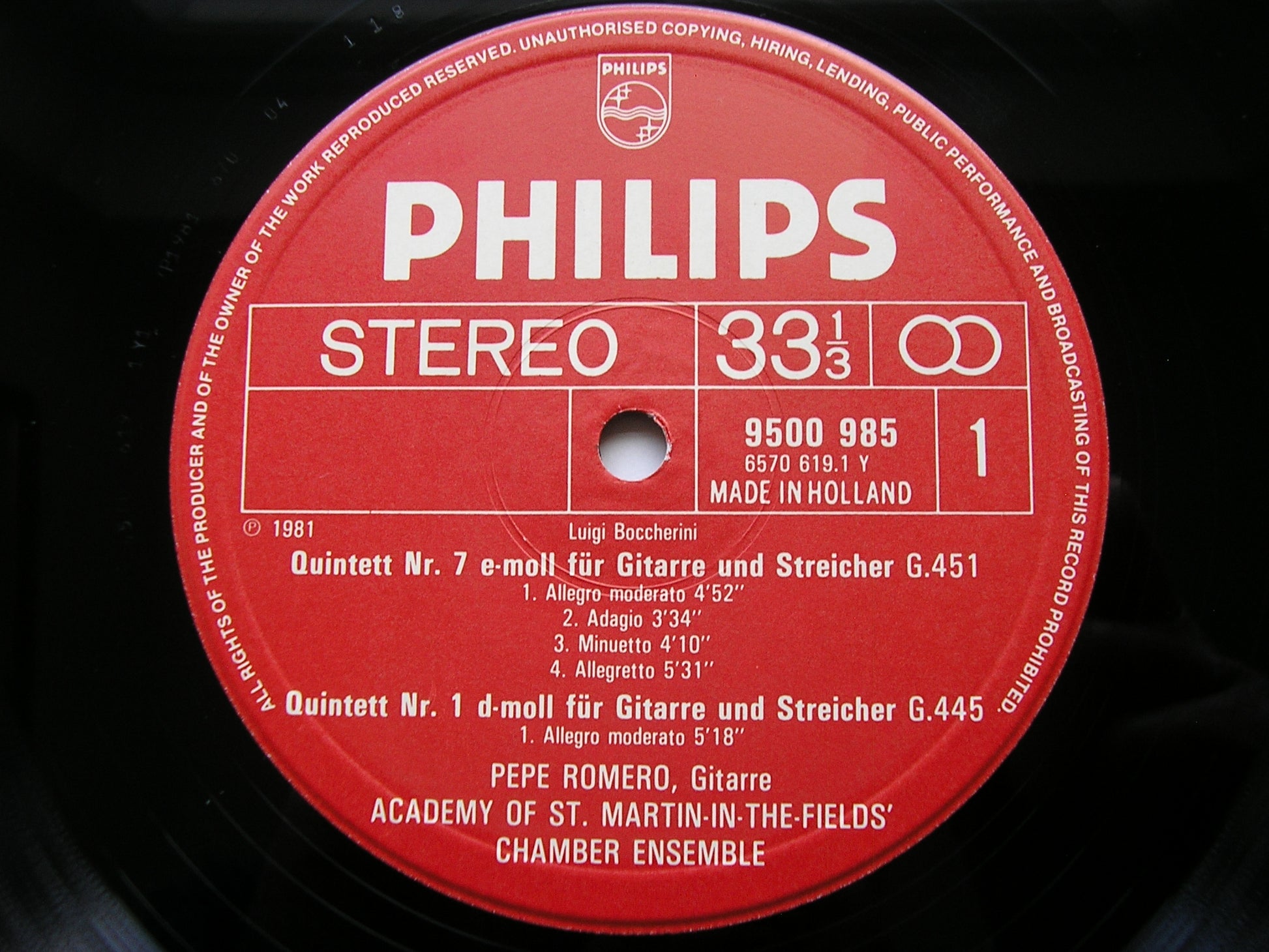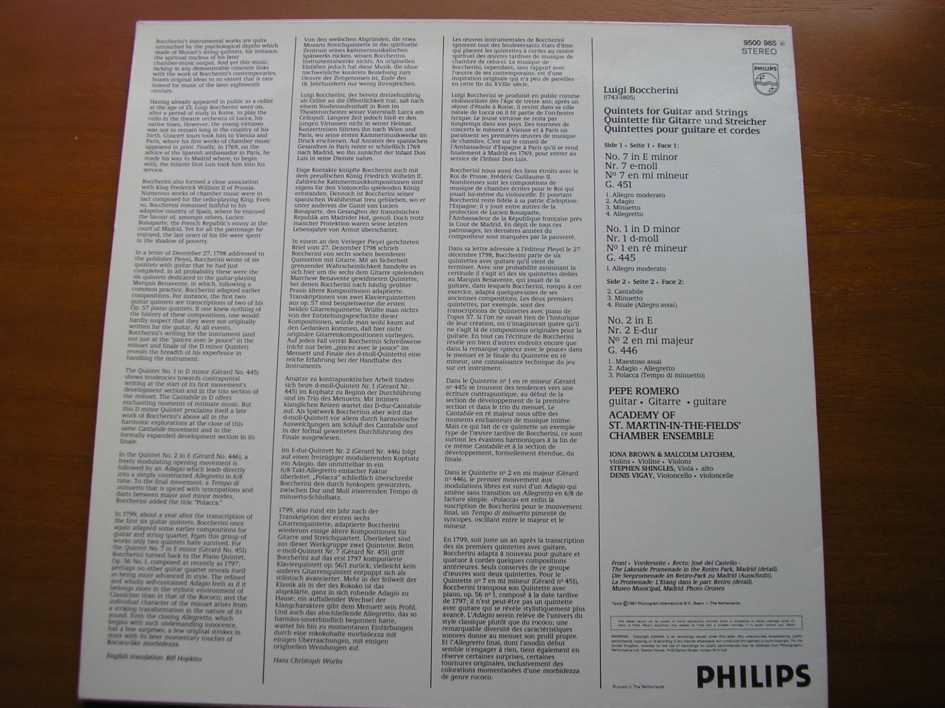 BOCCHERINI: GUITAR QUINTETS Nos. 1 / 2 / 7 ROMERO / ACADEMY OF St MARTIN IN THE FIELDS 9500 985
