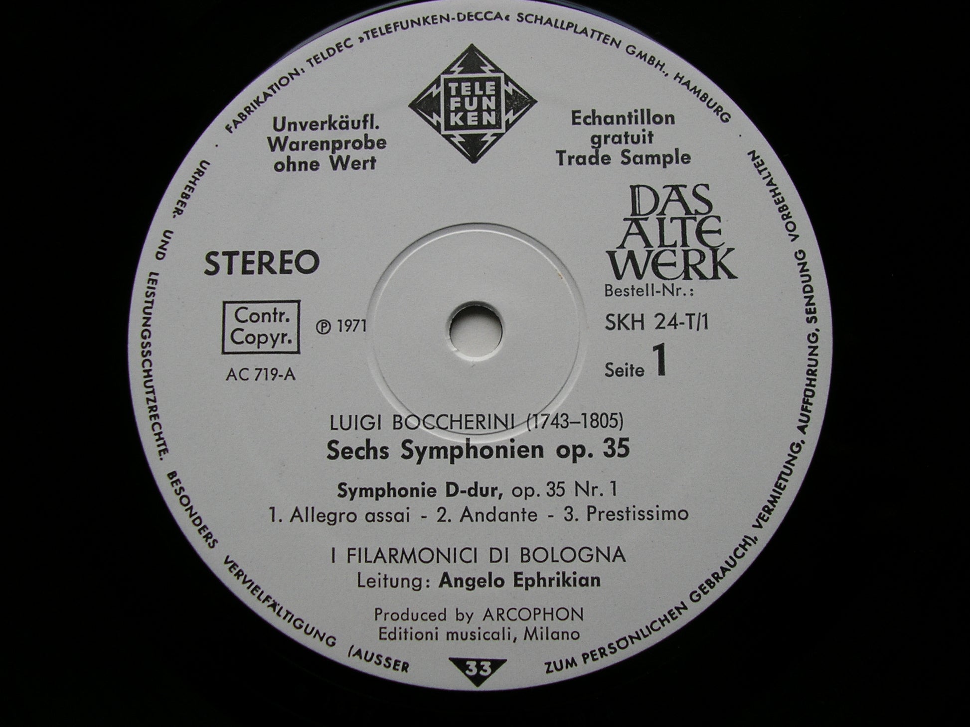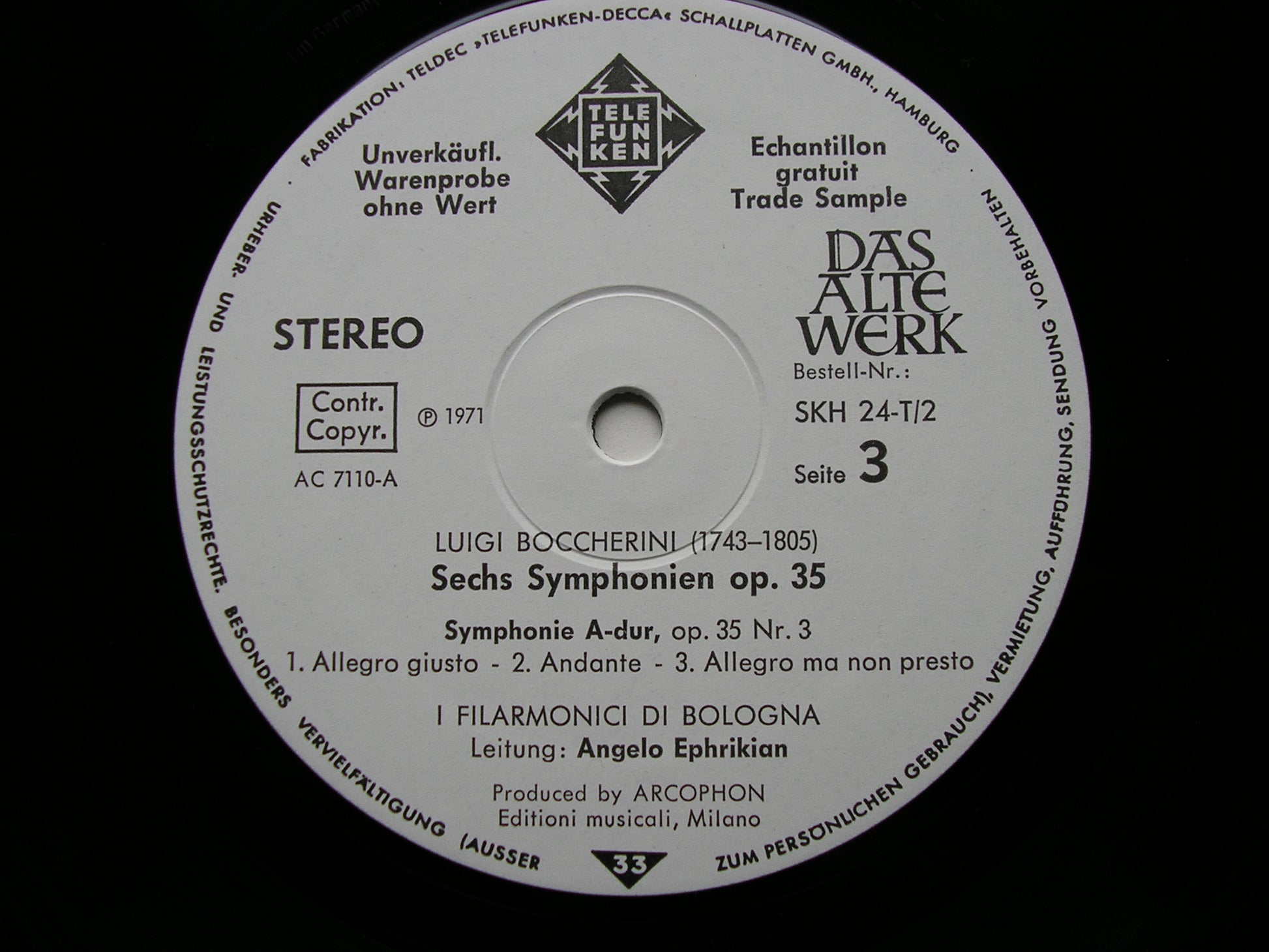 BOCCHERINI: SIX SYMPHONIES Op. 35 BOLOGNA PHILHARMONIC / EPHRIKIAN 3LP SKH 24 T 1-3