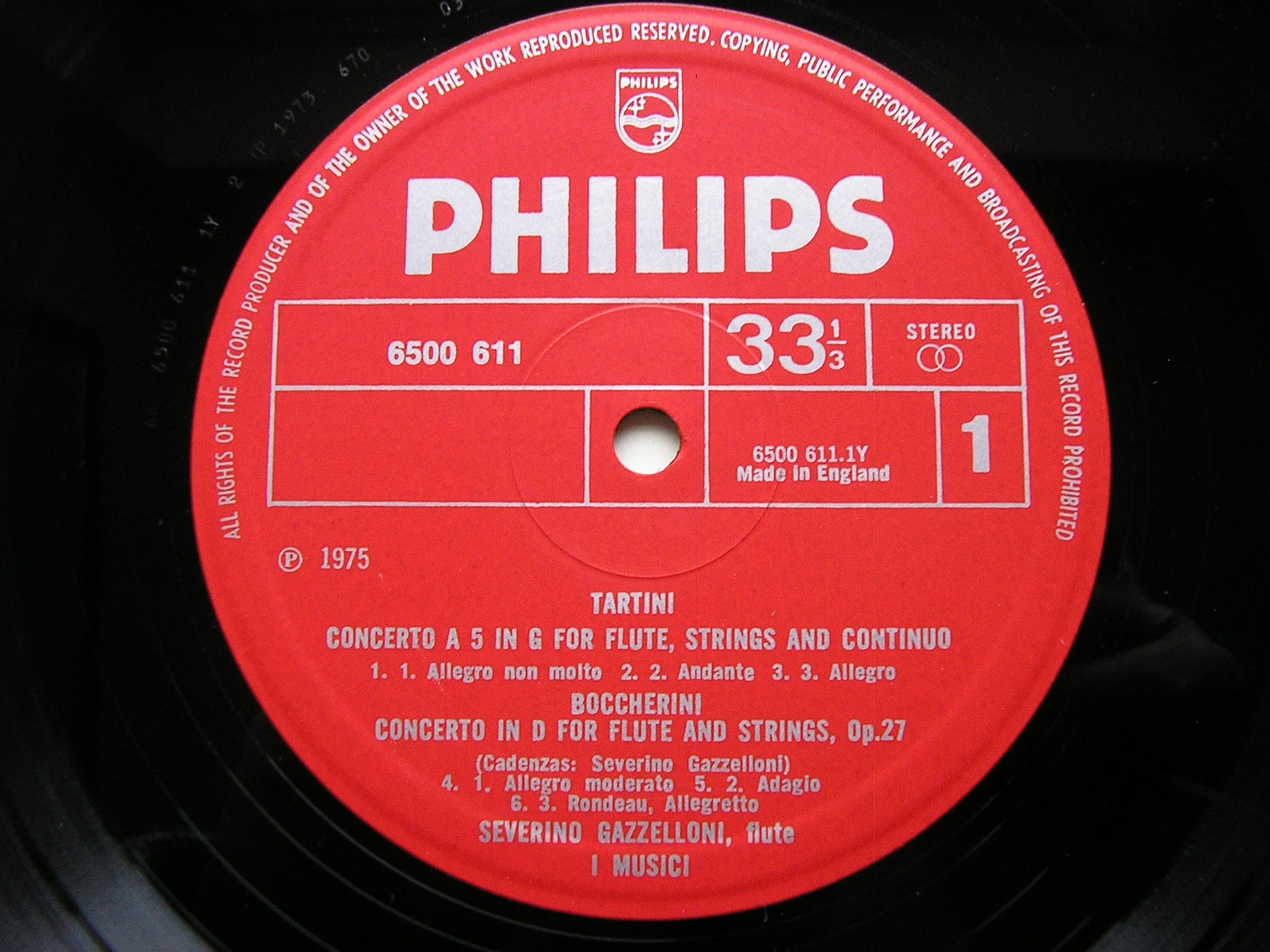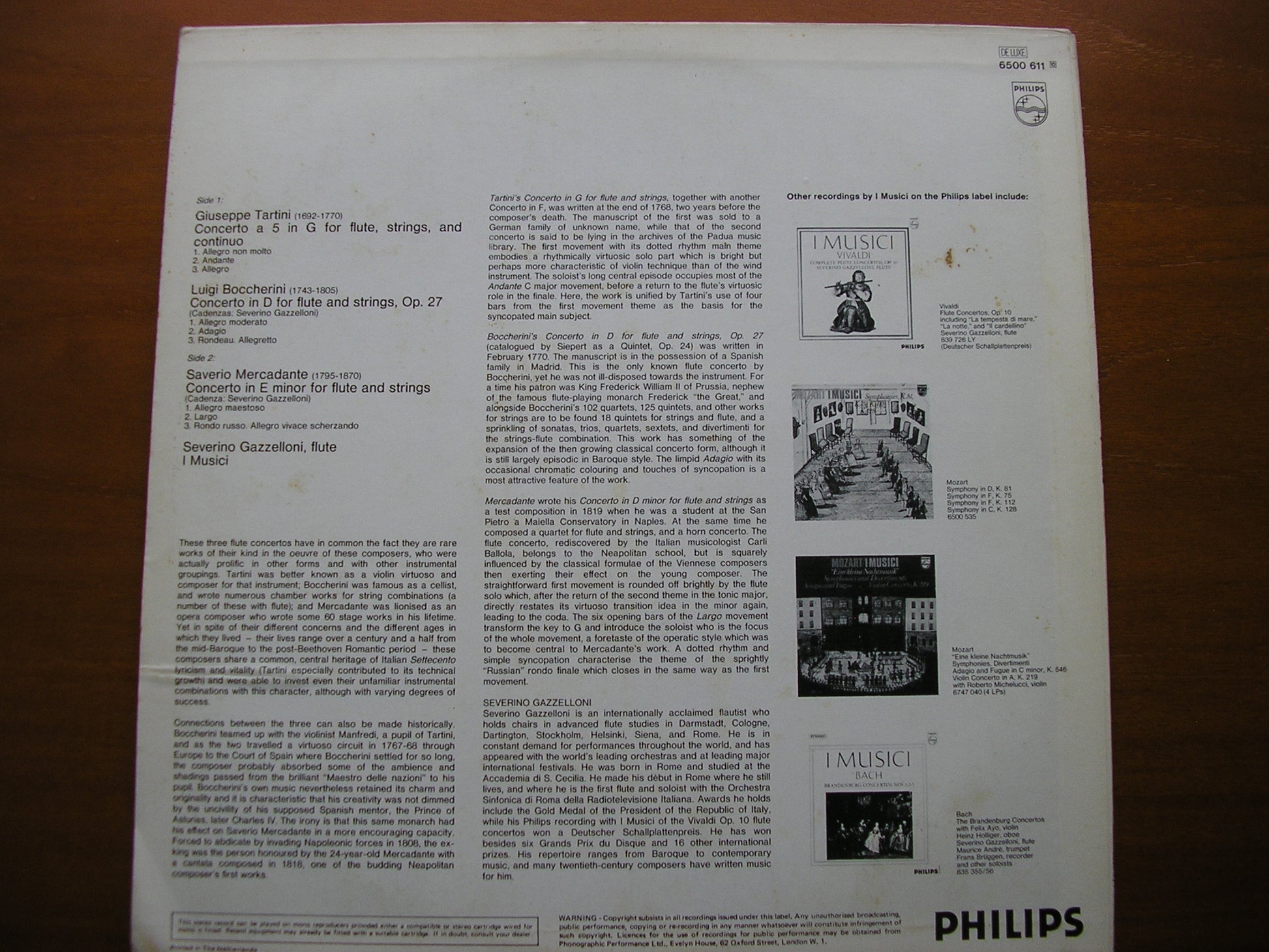 6500 611  FLUTE CONCERTOS: BOCCHERINI / TARTINI / MERCADANTE      SEVERINO GAZZELLONI / I  MUSICI