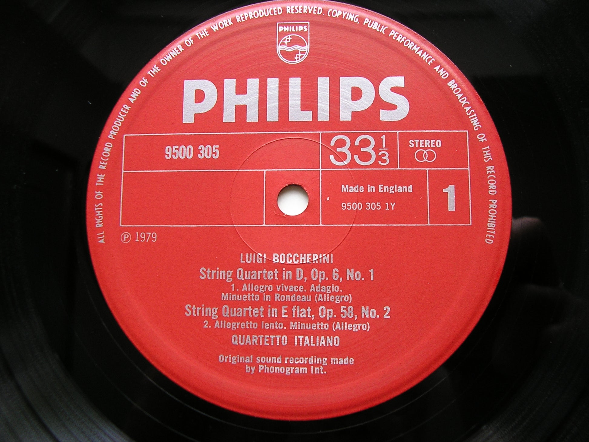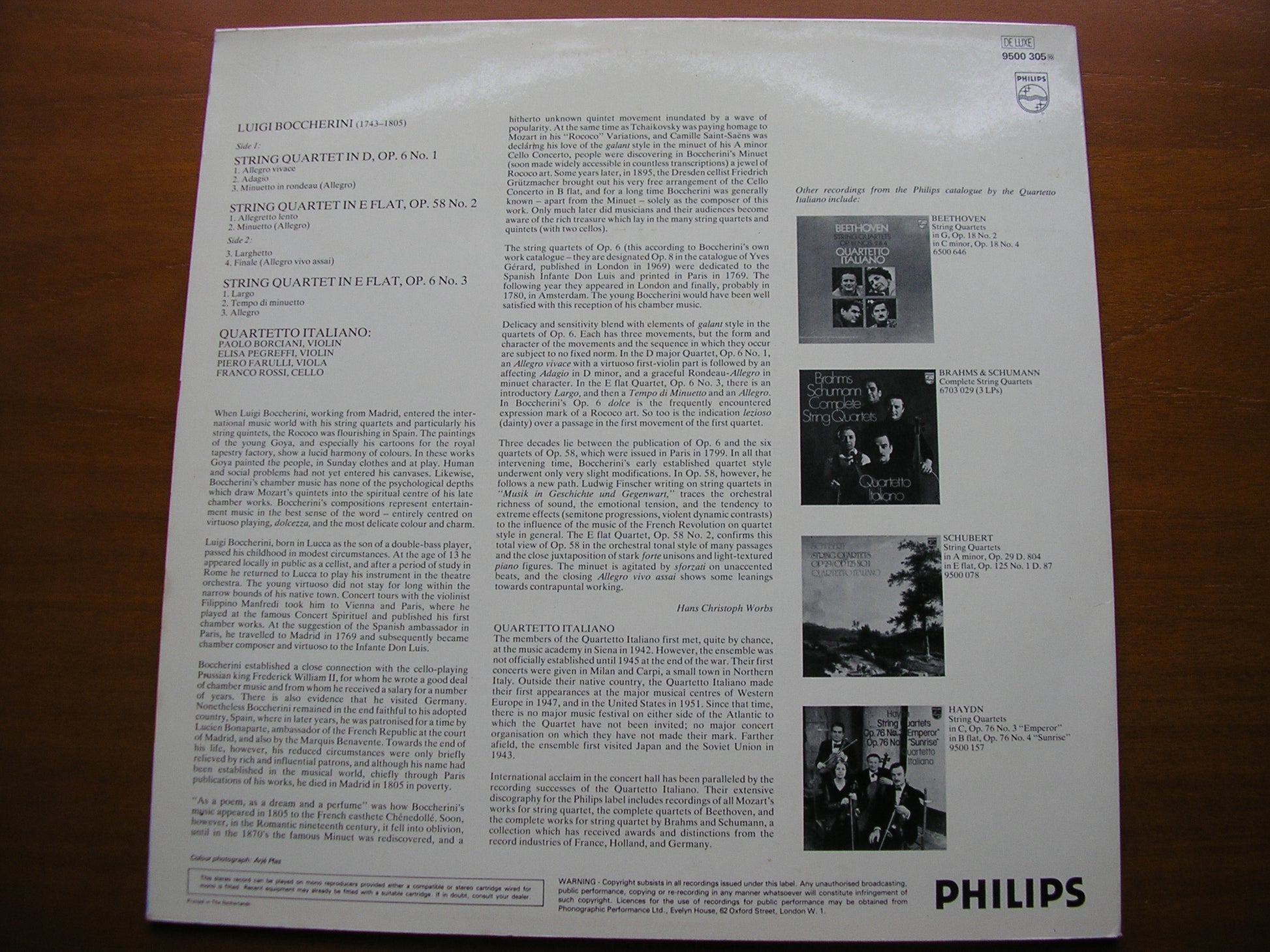 9500 305  BOCCHERINI: STRING QUARTETS Op. 6 Nos. 1 & 3 / STRING QUARTET Op. 58 No. 2       QUARTETTO ITALIANO