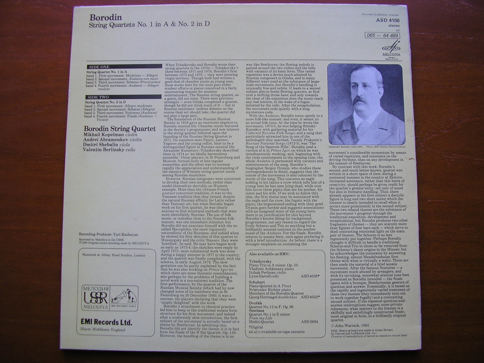 ASD 4100  BORODIN: STRING QUARTETS Nos. 1 & 2      BORODIN QUARTET