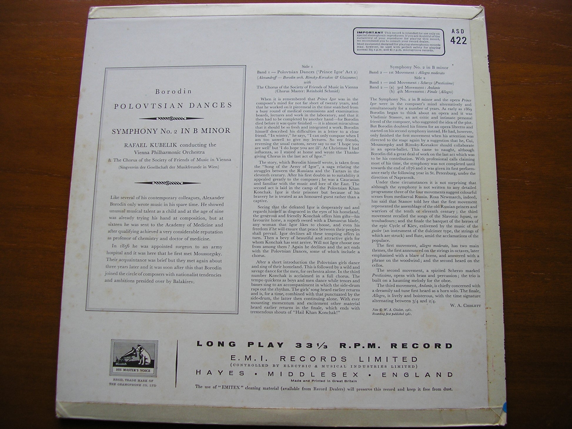 ASD 422  BORODIN: SYMPHONY No. 2 / POLOVTSIAN DANCES    RAFAEL KUBELIK / VIENNA PHILHARMONIC ORCHESTRA