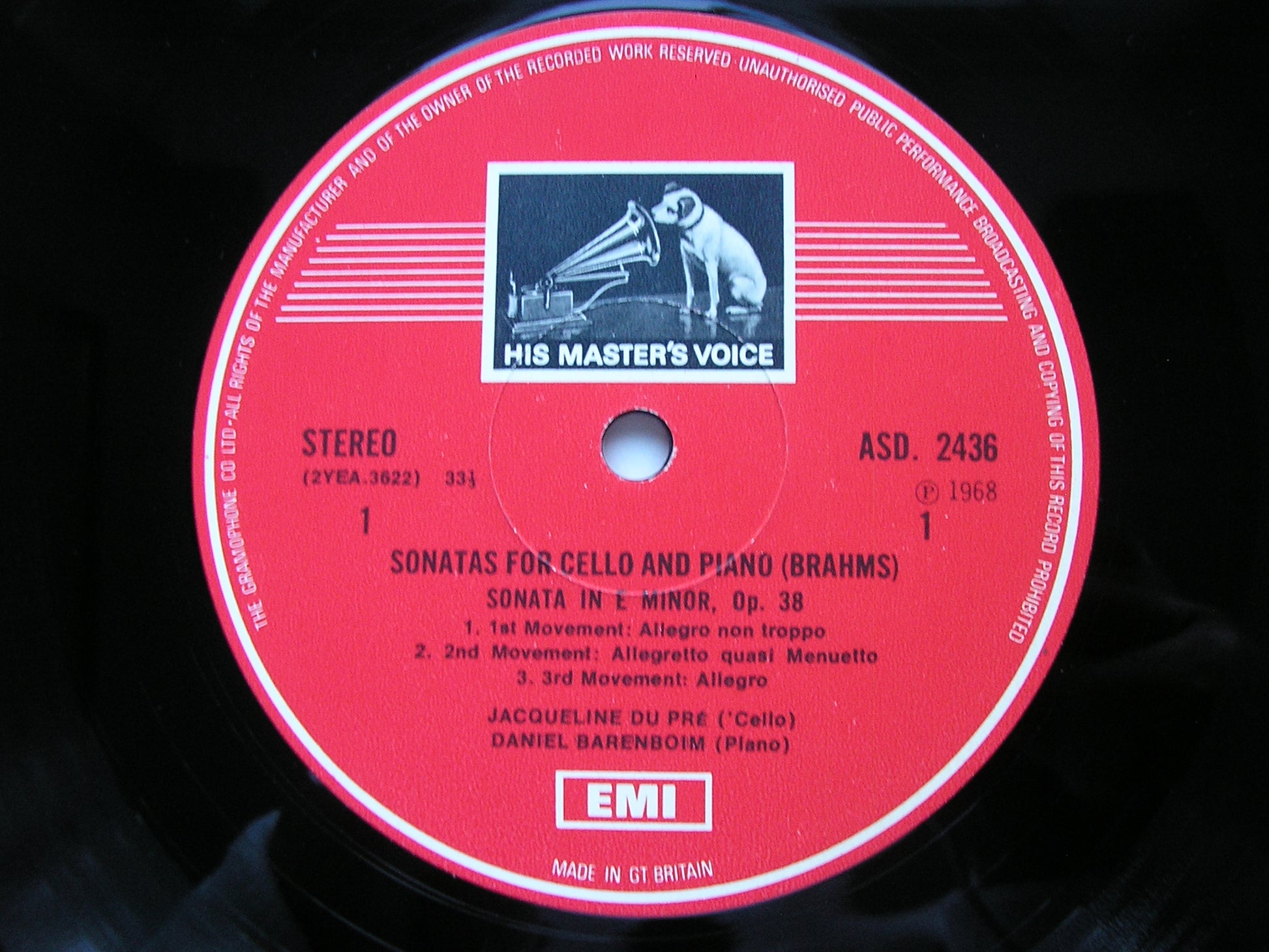 ASD 2436  BRAHMS: CELLO SONATAS Nos. 1 & 2      JACQUELINE DU PRE / DANIEL BARENBOIM