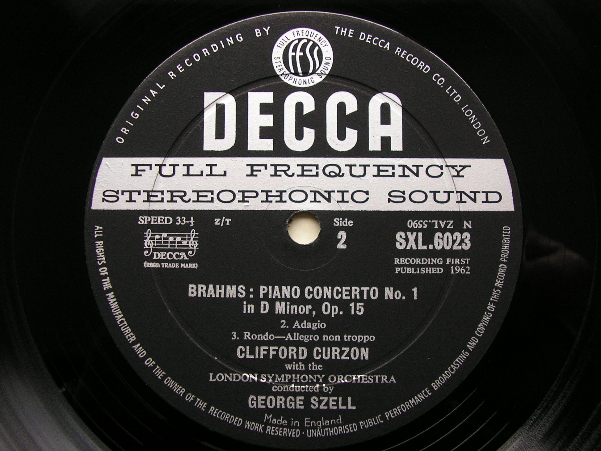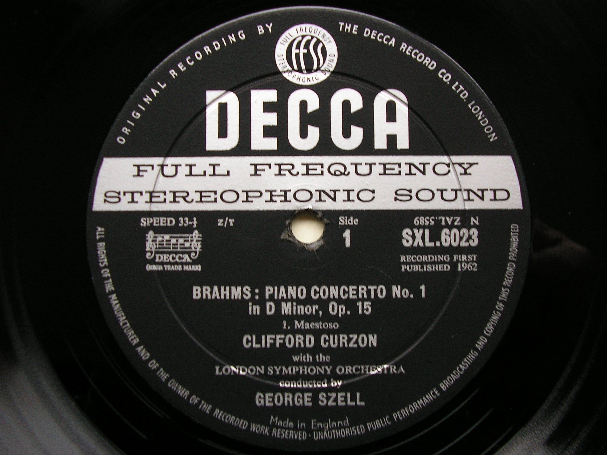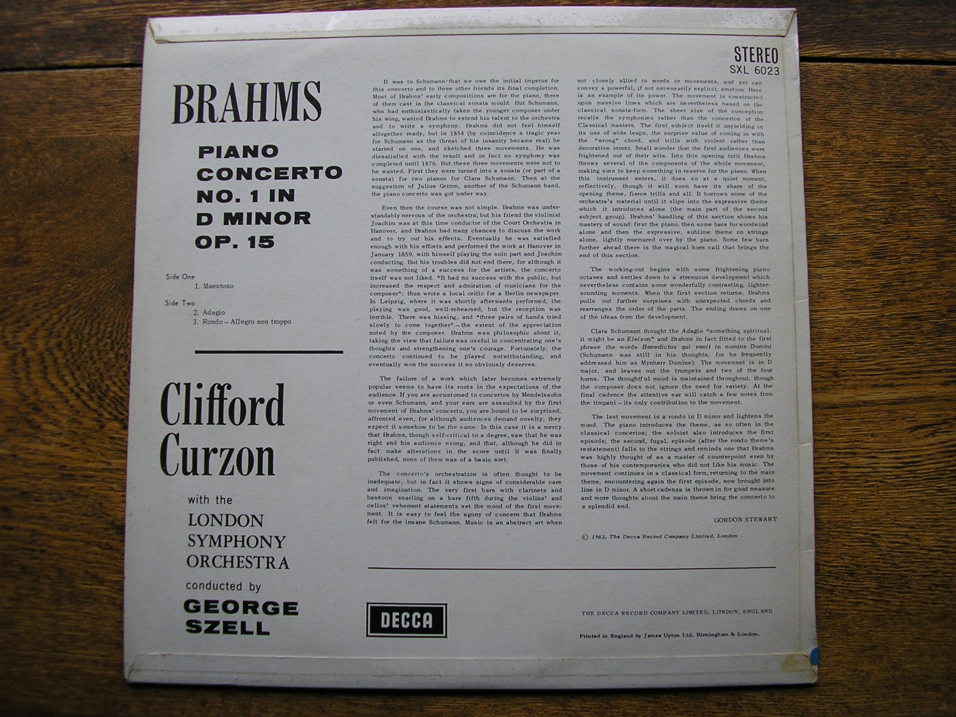 BRAHMS: PIANO CONCERTO No. 1 CURZON / LONDON SYMPHONY / SZELL SXL 6023