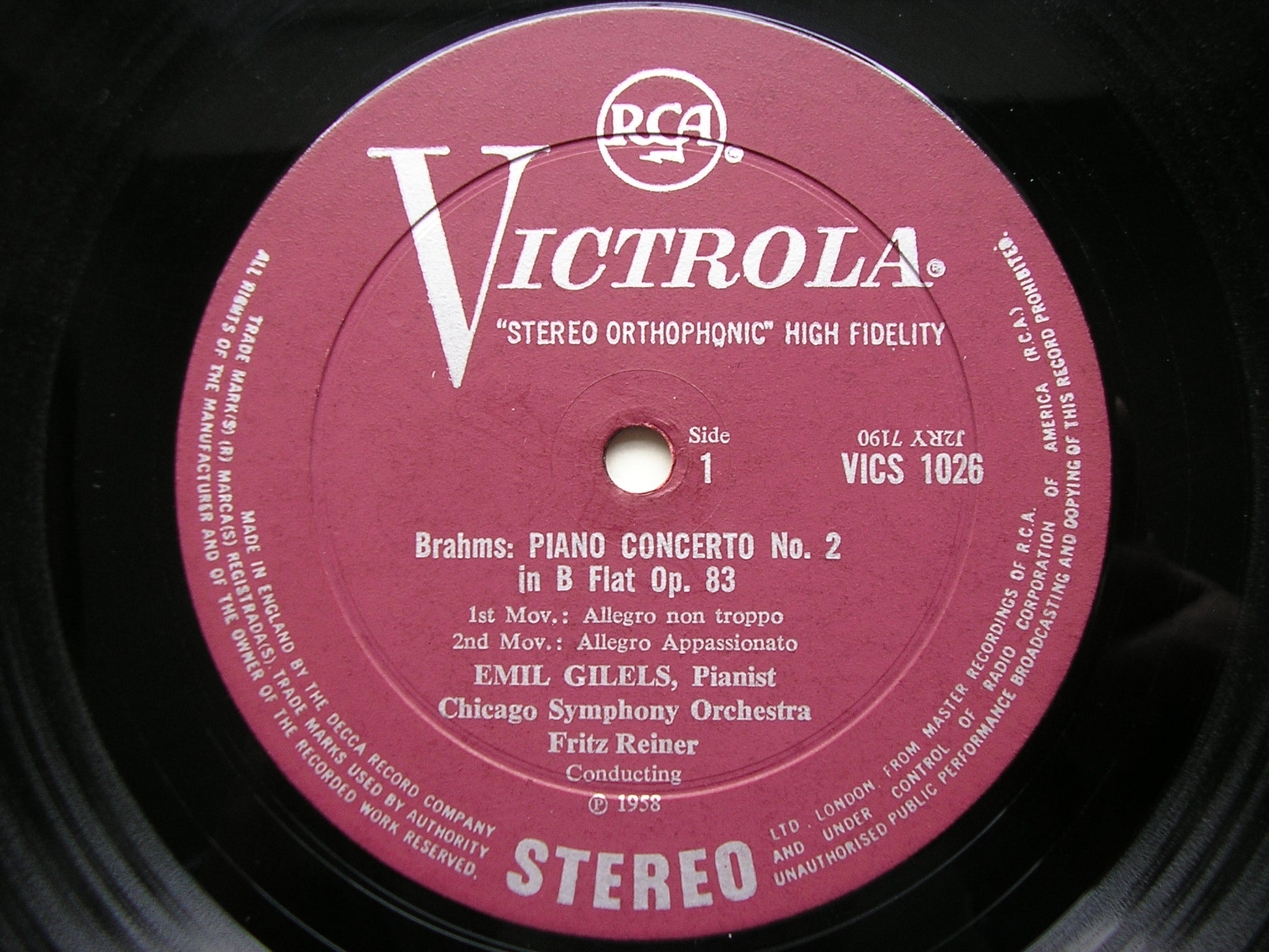 VICS 1026  BRAHMS: PIANO CONCERTO No. 2    EMIL GILELS / CHICAGO SYMPHONY ORCHESTRA / FRITZ REINER