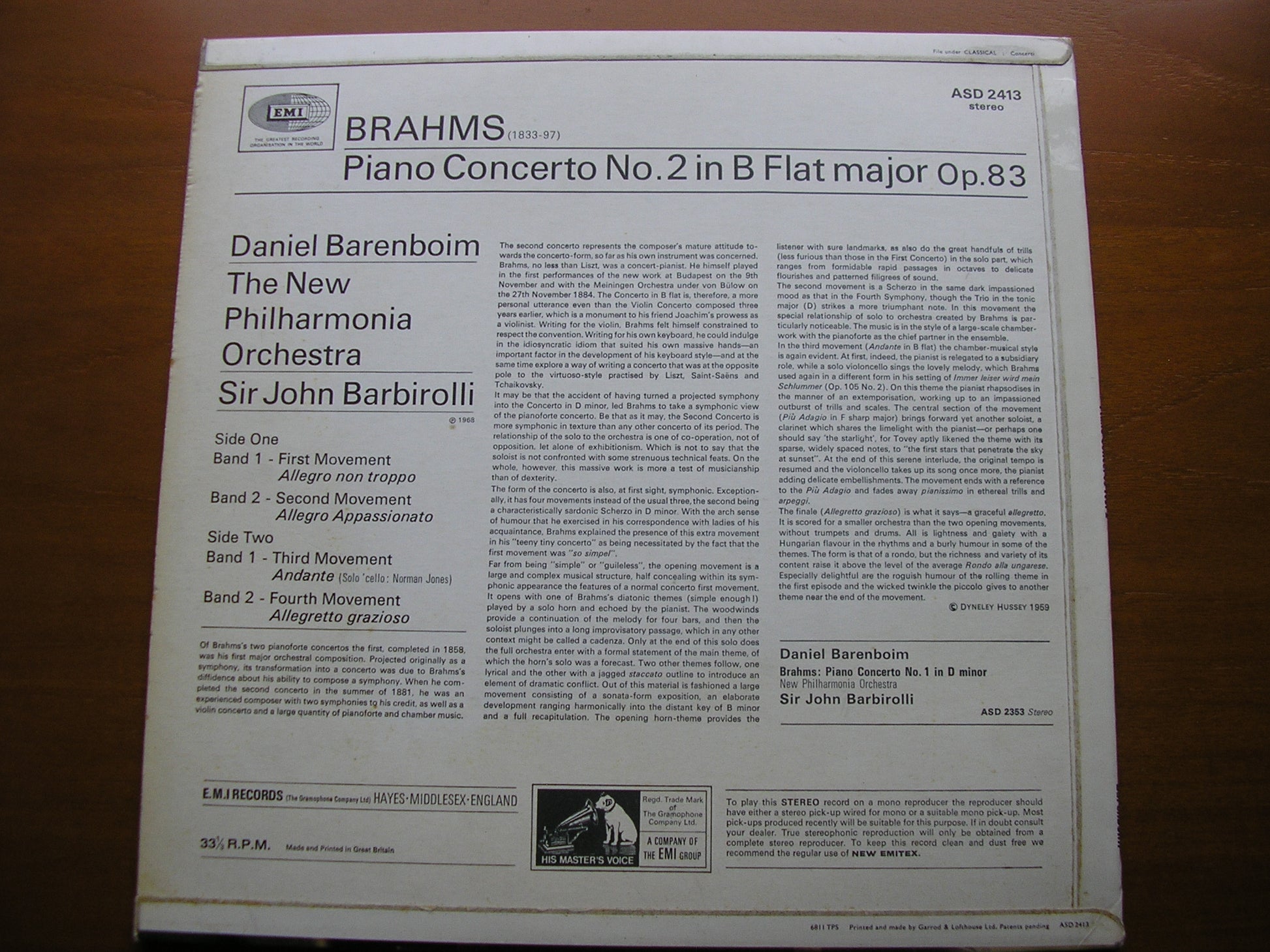ASD 2413  BRAHMS: PIANO CONCERTO No. 2      DANIEL BARENBOIM / NEW PHILHARMONIA ORCHESTRA / SIR JOHN BARBIROLLI
