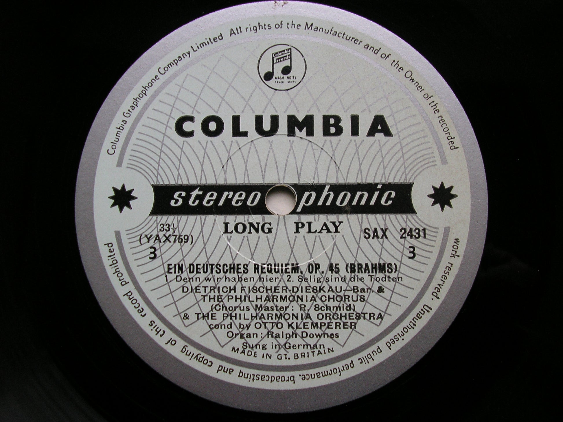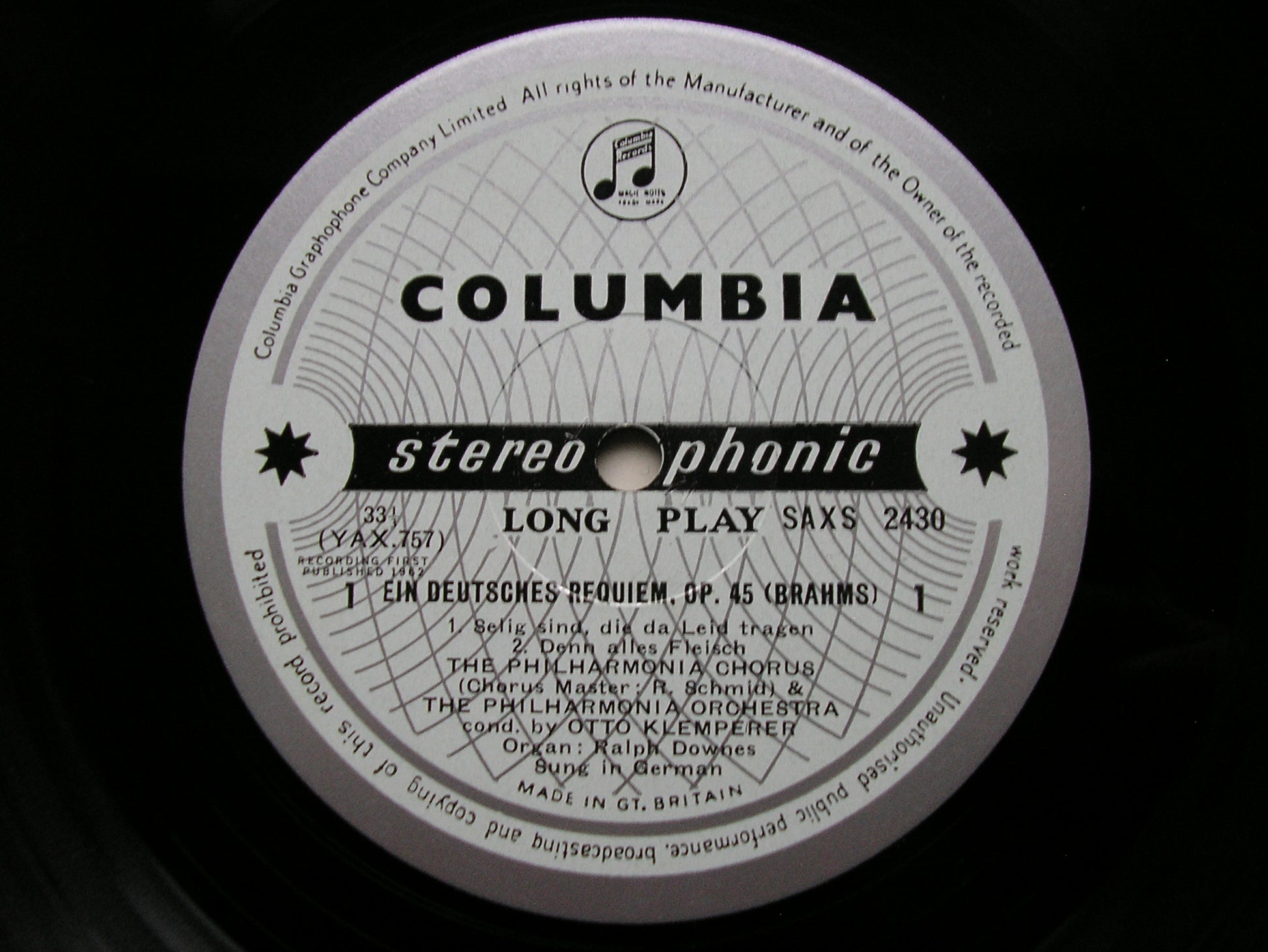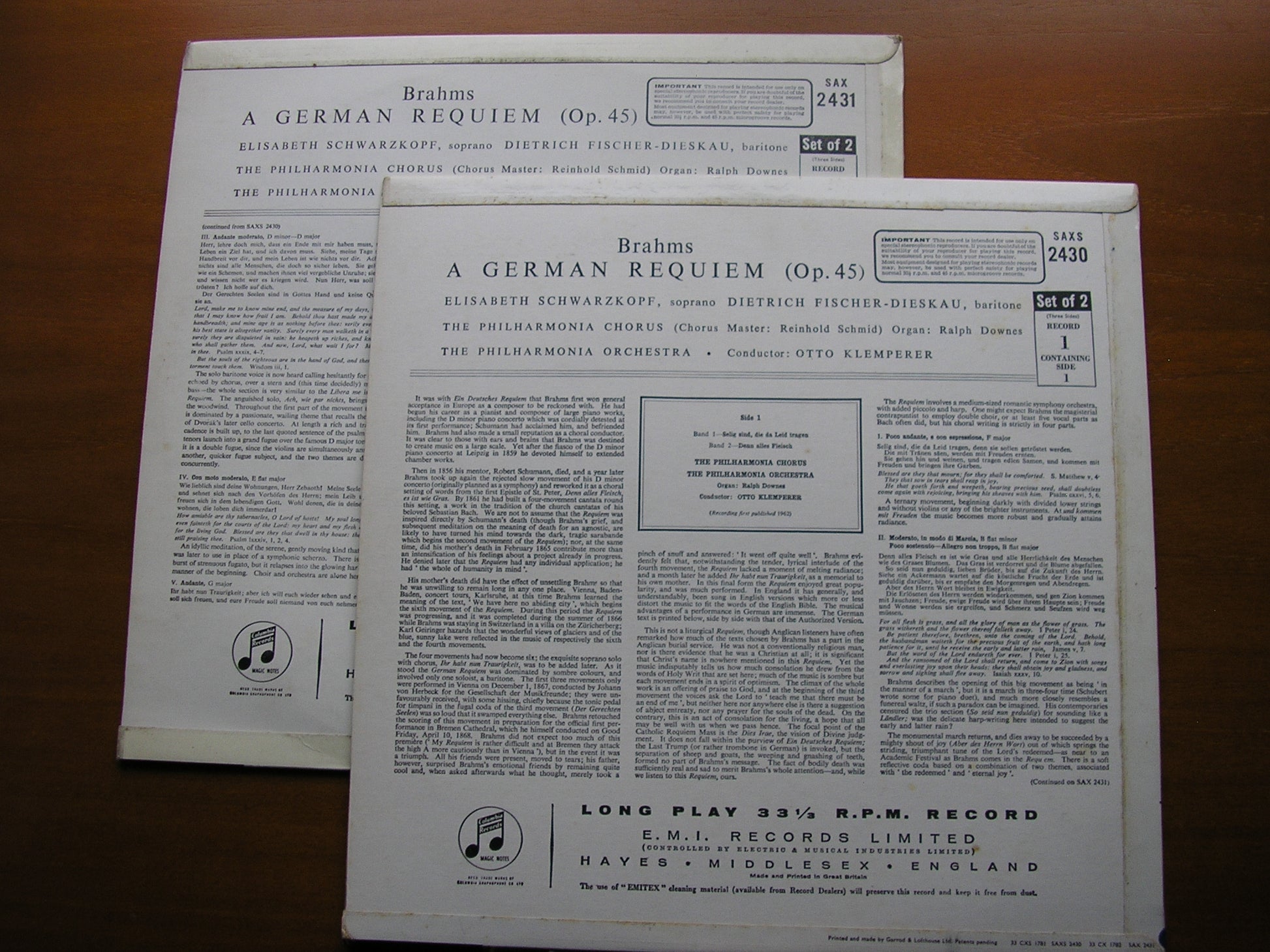 SAX 2430 - 2431  BRAHMS: REQUIEM    ELISABETH SCHWARZKOPF / DIETRICH FISCHER - DIESKAU / PHILHARMONIA ORCHESTRA / OTTO KLEMPERER