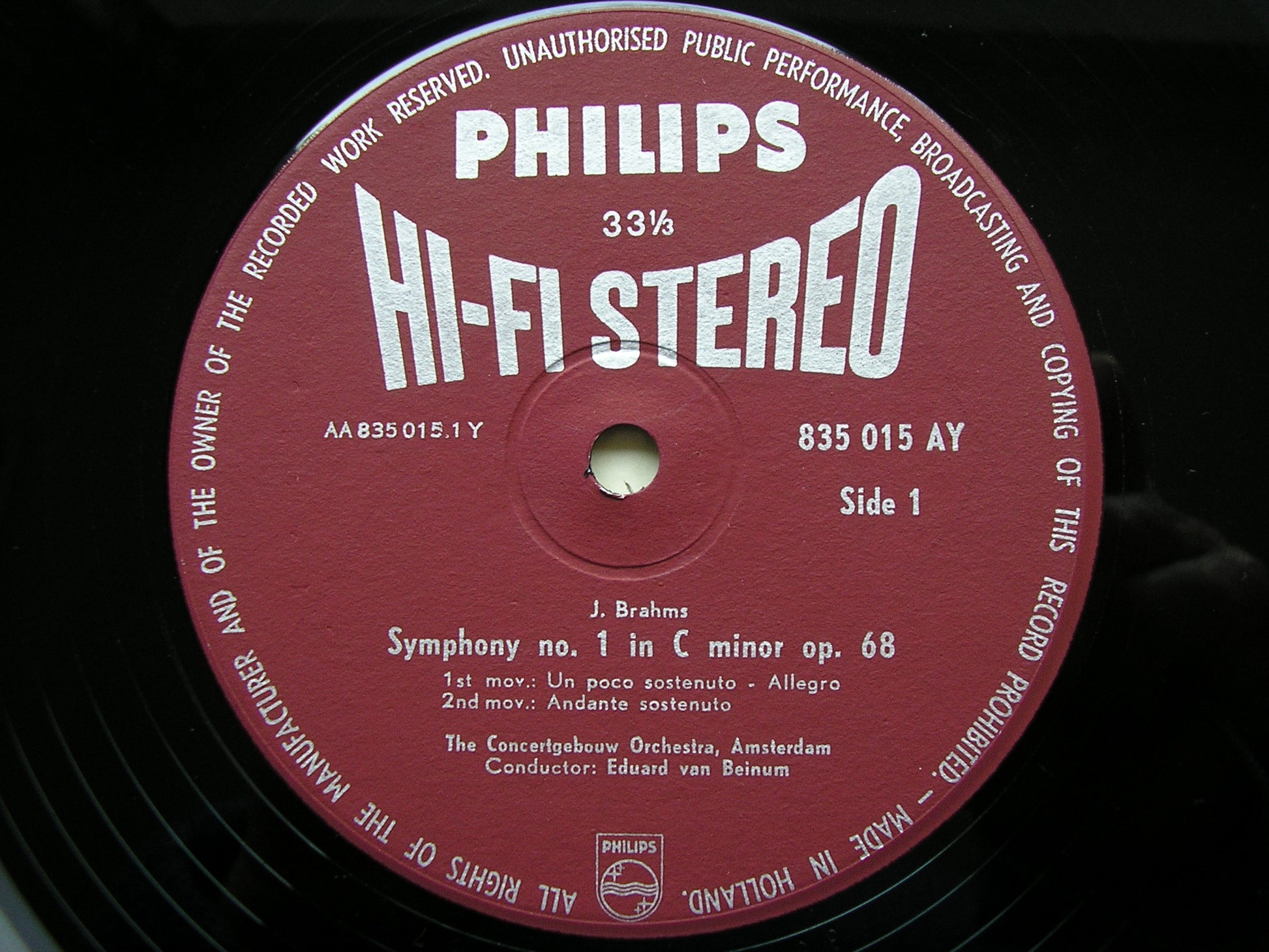 SABL 124  BRAHMS: SYMPHONY No. 1   EDUARD VAN BEINUM / CONCERTGEBOUW ORCHESTRA AMSTERDAM