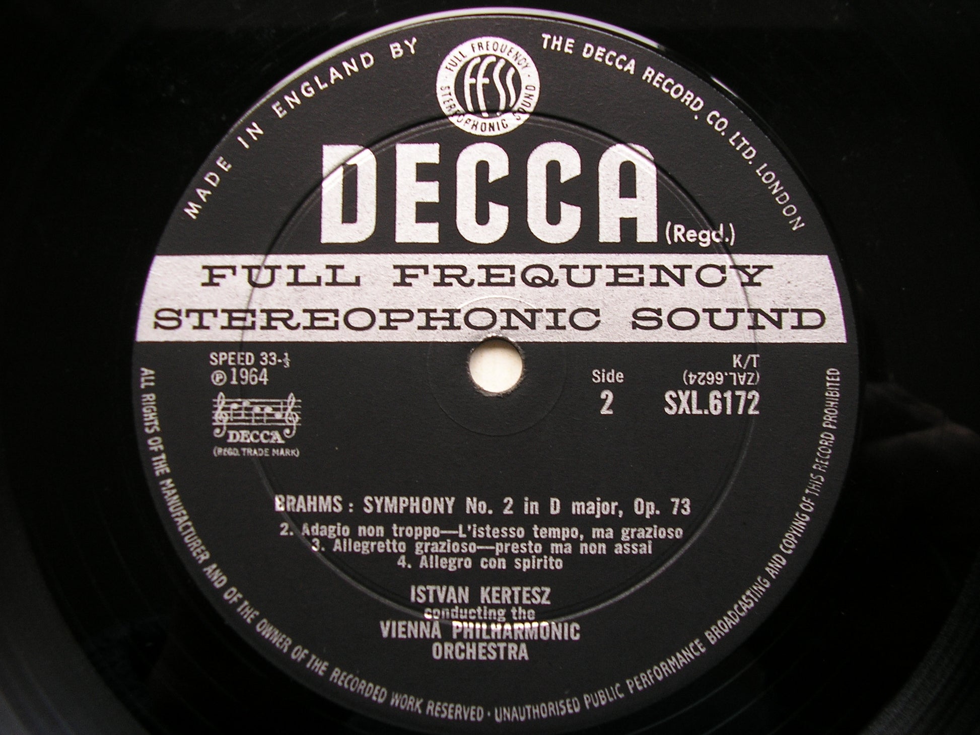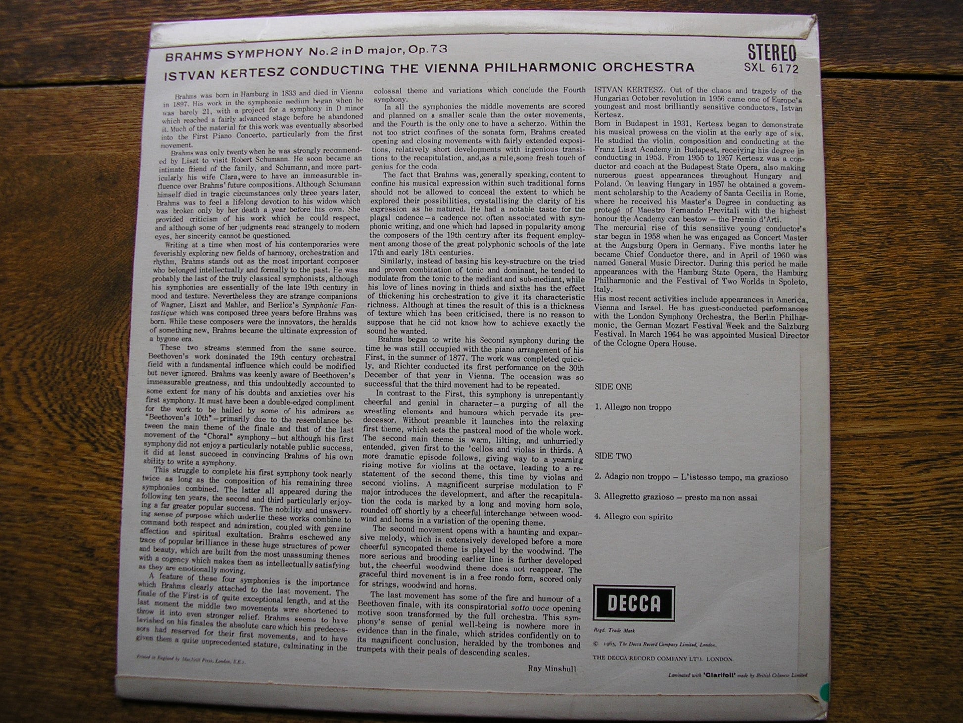 SXL 6172 BRAHMS: SYMPHONY No. 2 ISTVAN KERTESZ / VIENNA PHILHARMONIC ORCHESTRA