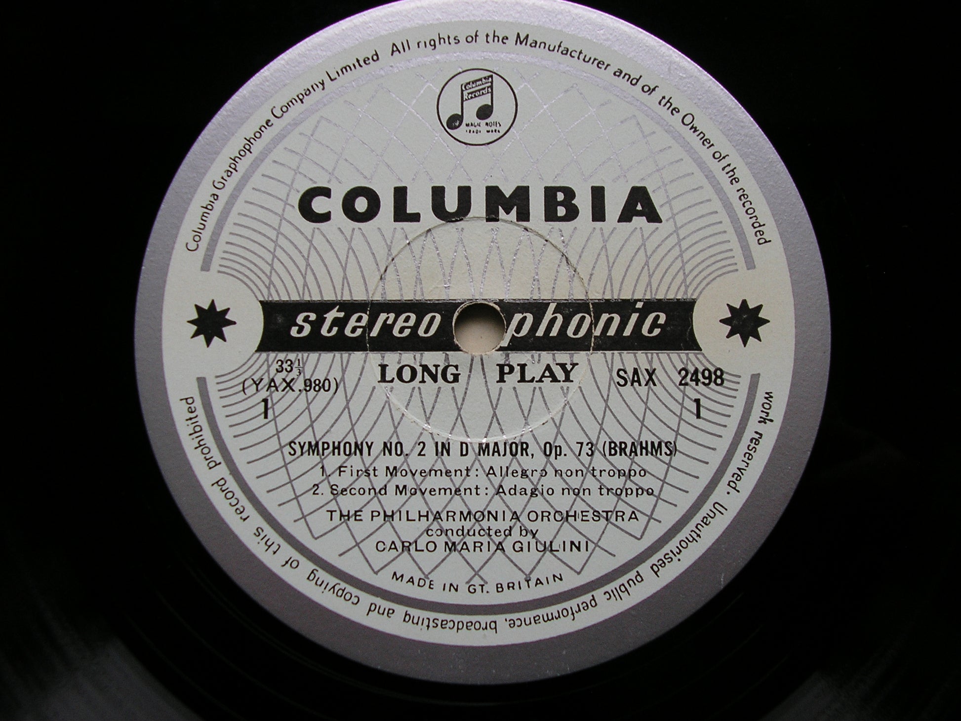 SAX 2498  BRAHMS: SYMPHONY No. 2      CARLO MARIA GIULINI / PHILHARMONIA ORCHESTRA