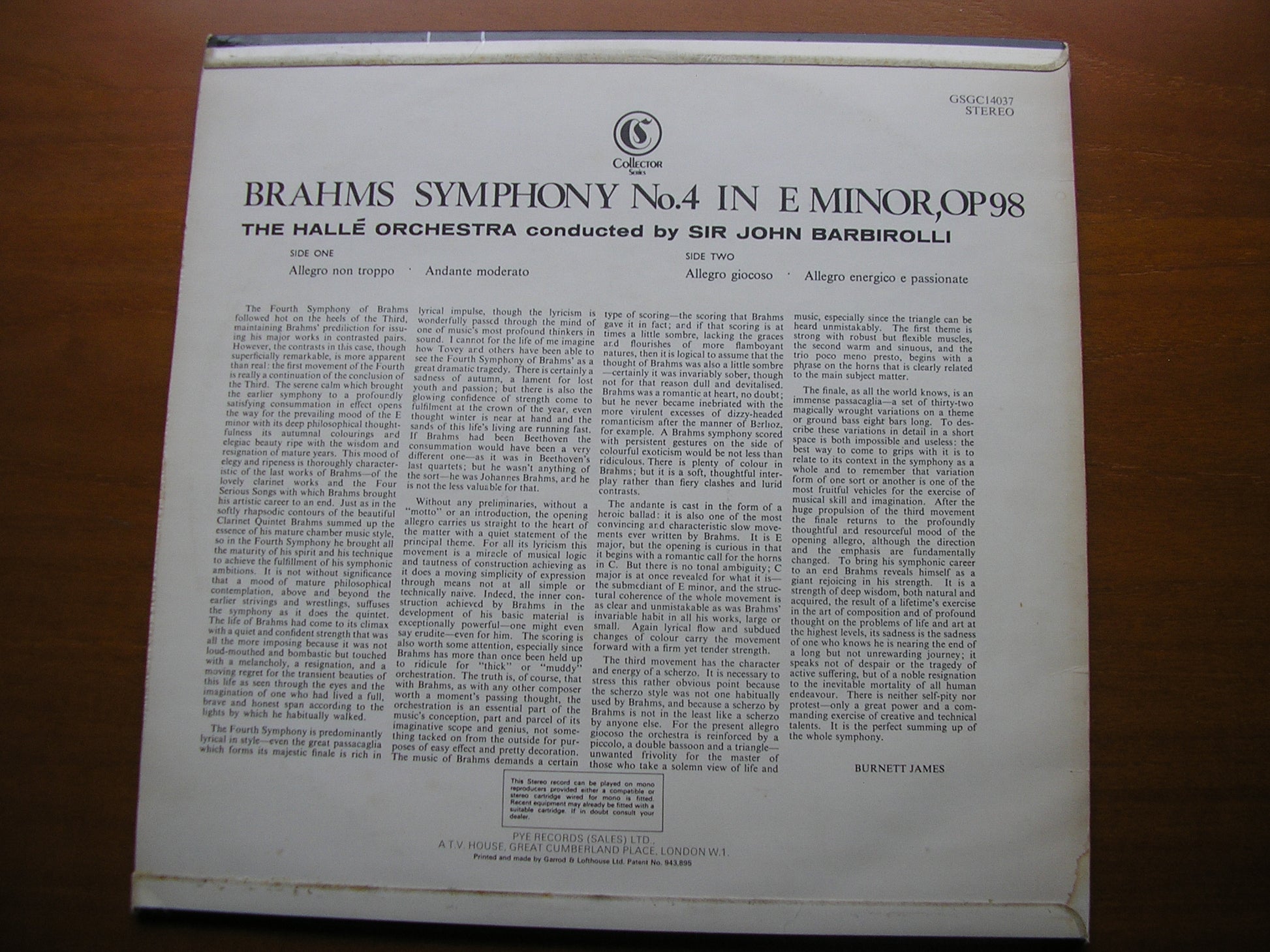 GSGC 14037  BRAHMS: SYMPHONY No. 4     SIR JOHN BARBIROLLI / HALLE ORCHESTRA