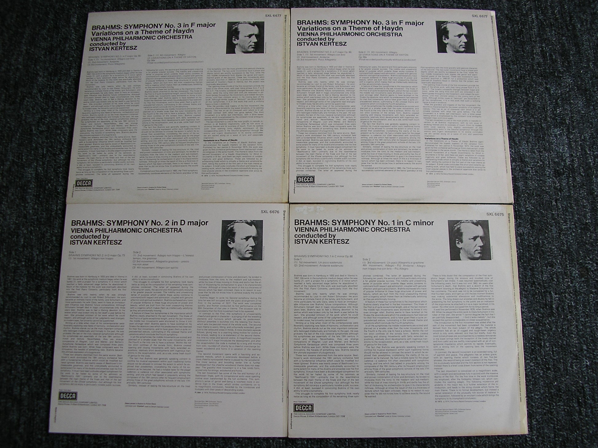 SXL 6675 / 6676 / 6677 / 6678  BRAHMS: THE FOUR SYMPHONIES / HAYDN VARIATIONS    ISTVAN KERTESZ / VIENNA PHILHARMONIC ORCHESTRA