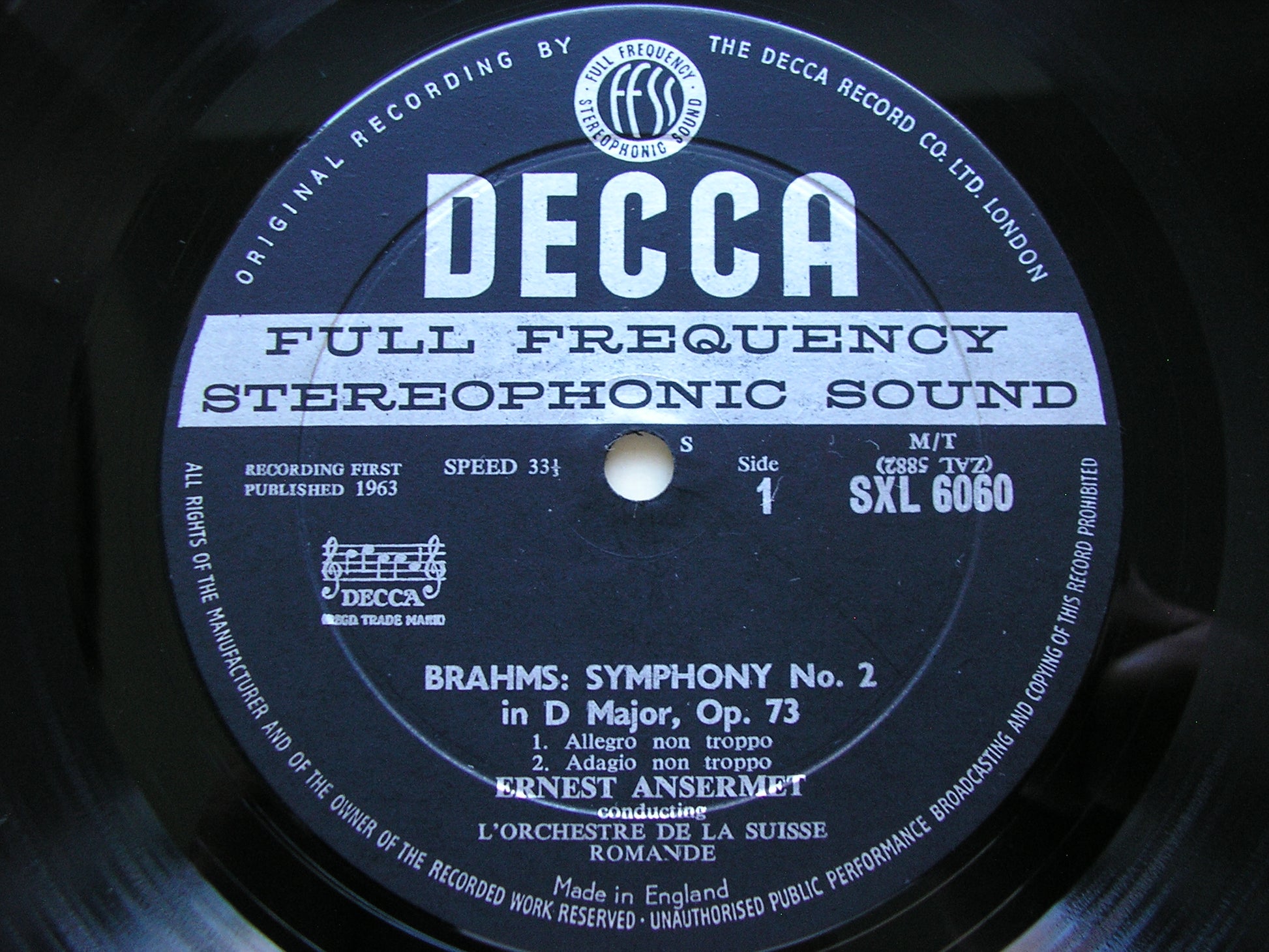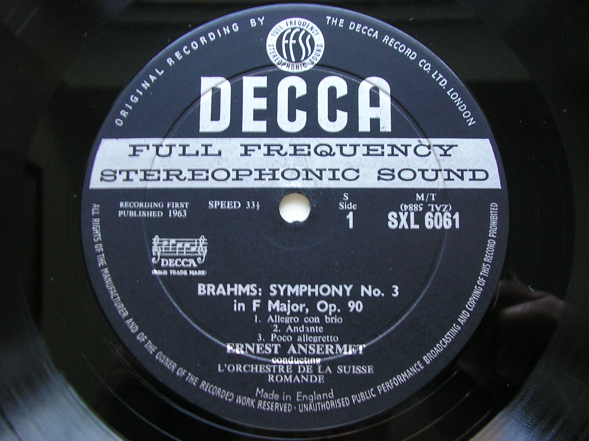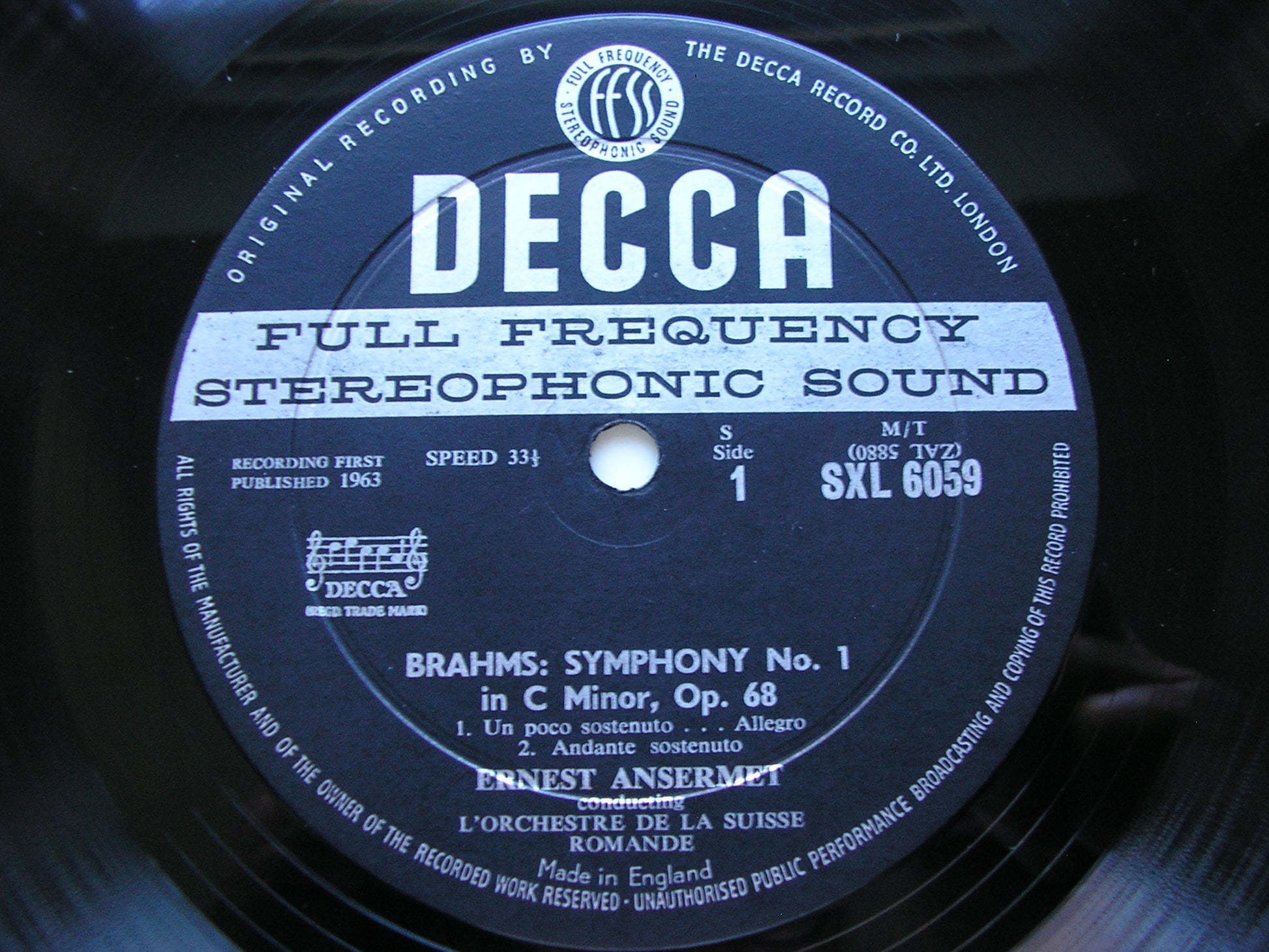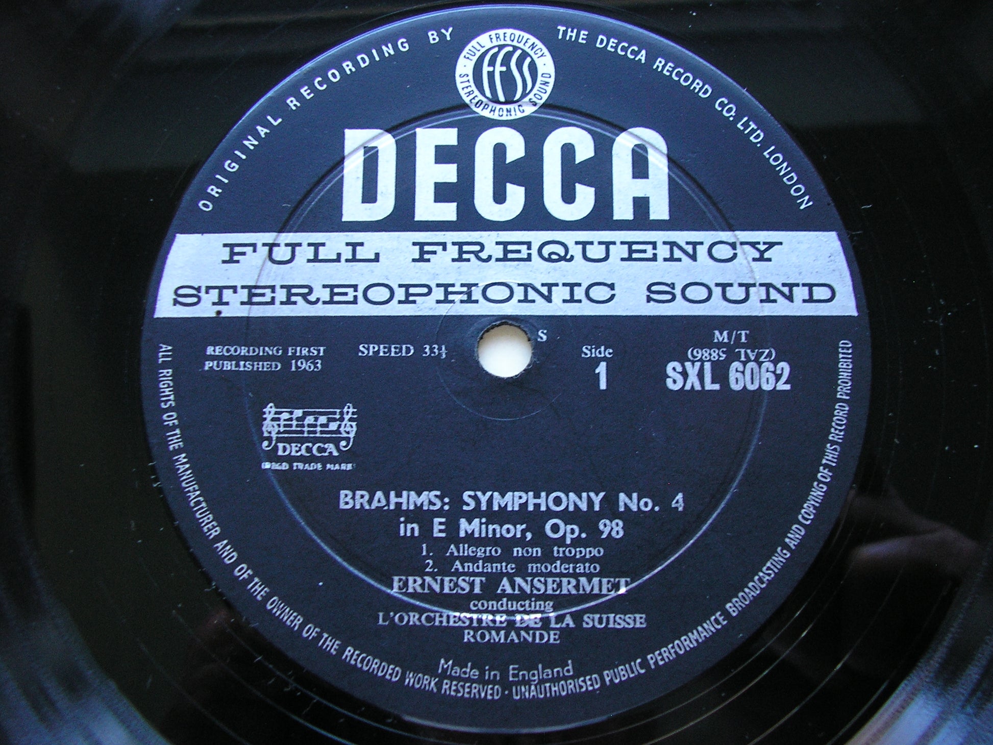 SXL 6059 / 6060 / 6061 / 6062  BRAHMS: THE FOUR SYMPHONIES / ST ANTONI VARIATIONS / TRAGIC OVERTURE / ACADEMIC FESTIVAL OVERTURE    ERNEST ANSERMET / SUISSE ROMANDE ORCHESTRA