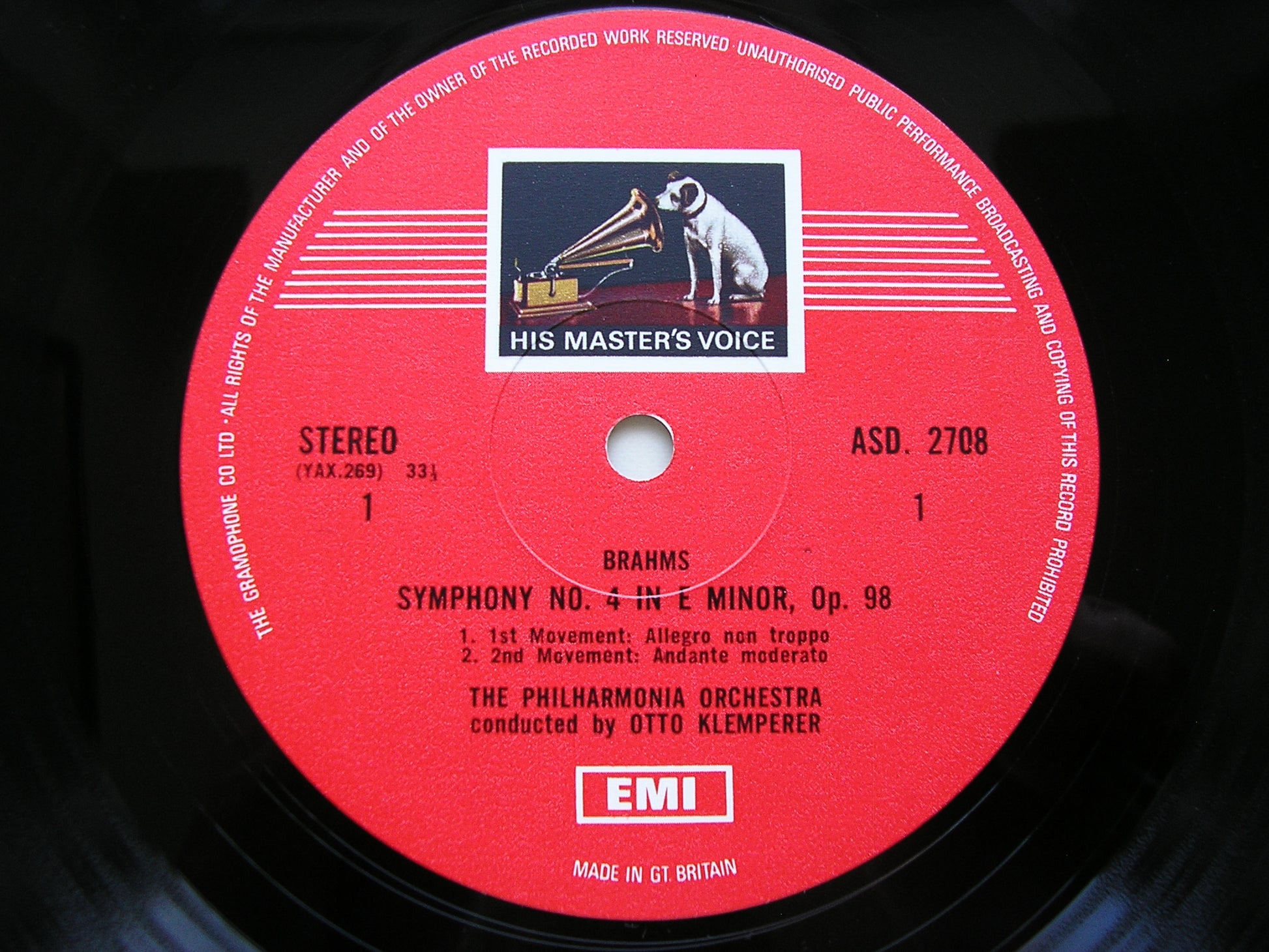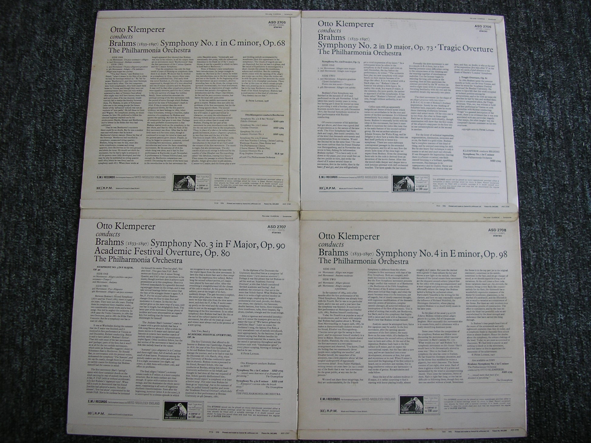 ASD 2705 /2706 / 2707 / 2708  BRAHMS: THE FOUR SYMPHONIES / TRAGIC OVERTURE / ACADEMIC FESTIVAL OVERTURE     OTTO KLEMPERER / PHILHARMONIA ORCHESTRA